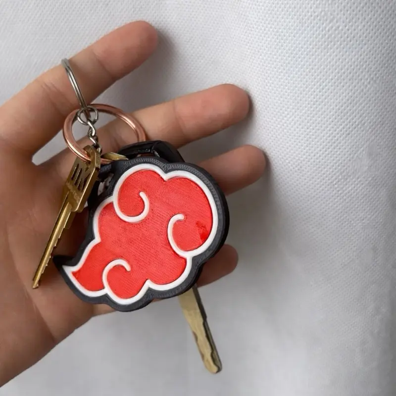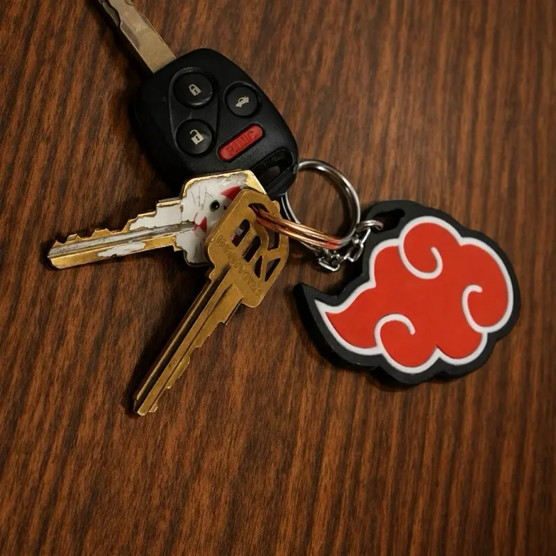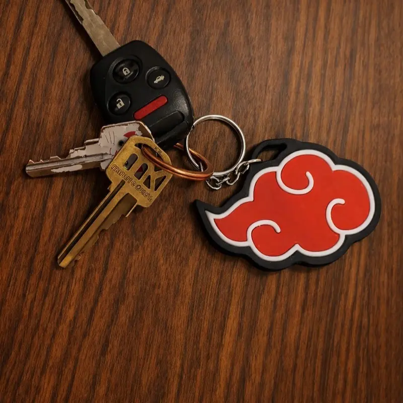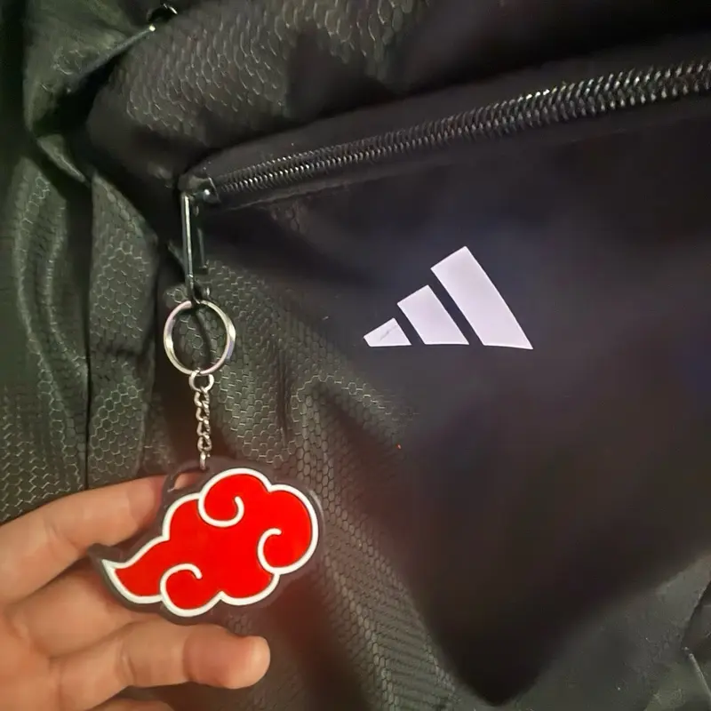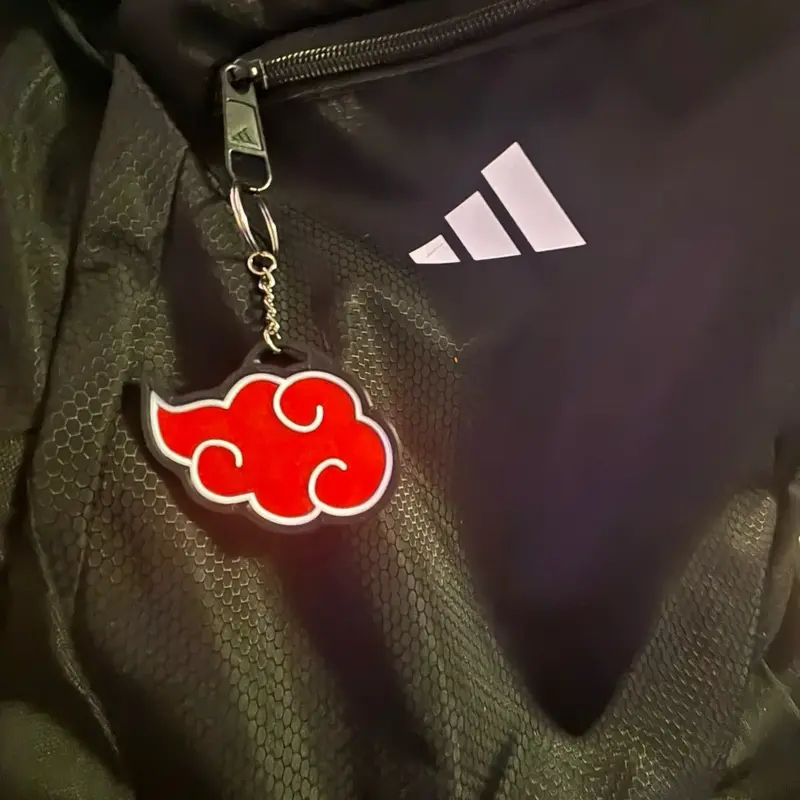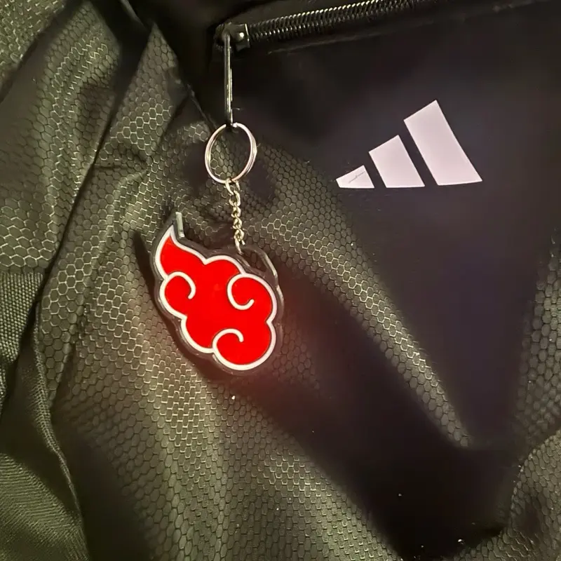 Carry a piece of anime style everywhere you go. This Akatsuki cloud inspired keychain features a bold red cloud design with a clean white border and durable black backing. Lightweight, strong, and perfect for keys, backpacks, or bags.