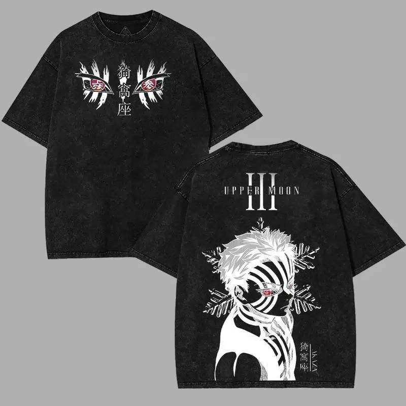 Akaza Upper moon rank 3 v6 Demon Slayer Kimetsu No Yaiba anime manga Washed t-shirt 2 sided printing Menswear Top graphic tee