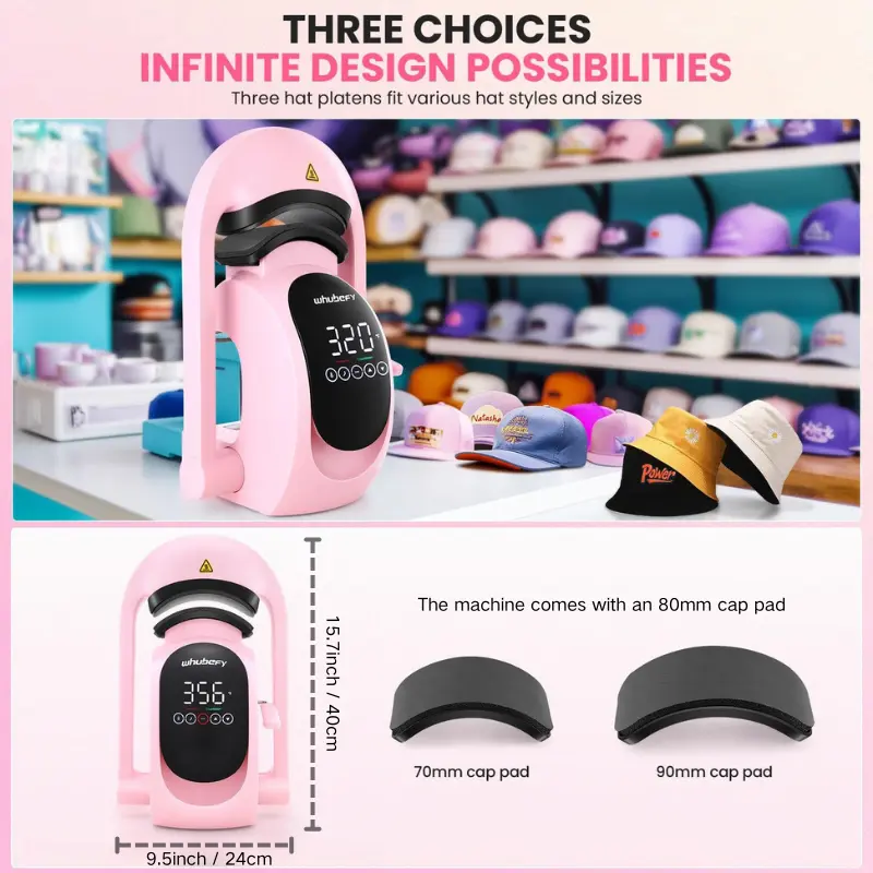 ·【Fits Various Hat Types】- Compact & portable design with 3 interchangeable platens. Adapts to berets, baseball caps, bucket hats, peaked caps, bonnets, etc. Great for home crafting or small business use. Personalized gift for friends and relatives.