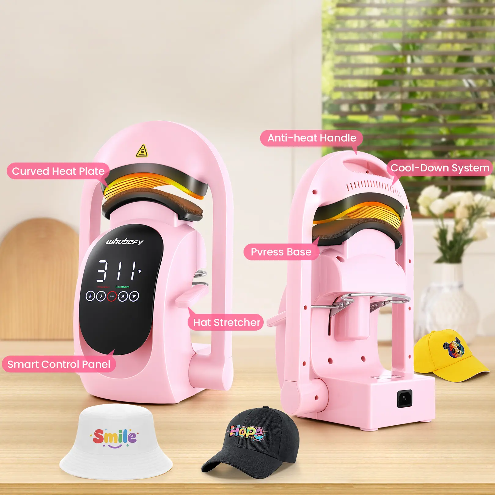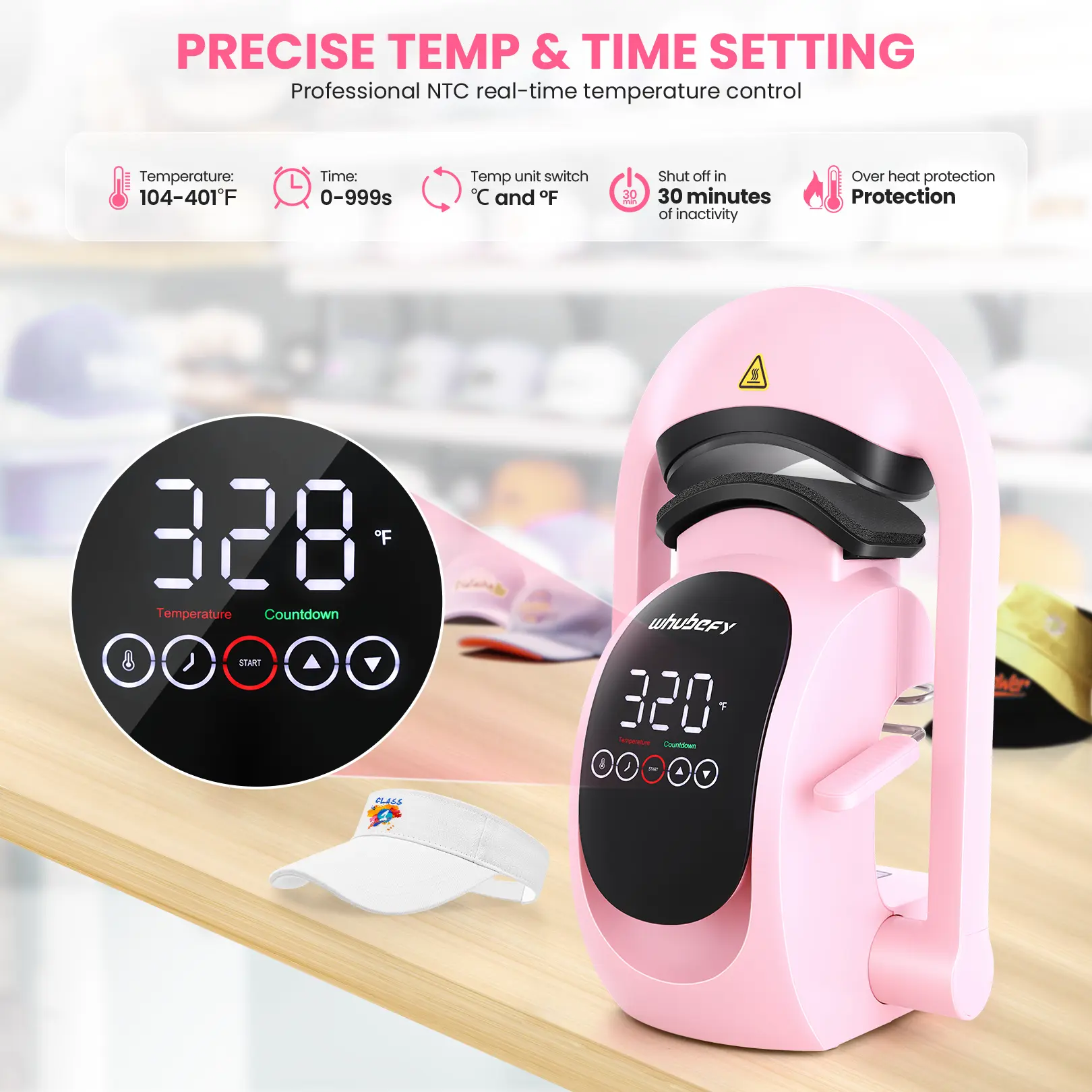 ·【Automatic Cap Press】- Automatic release & press design liberates you from repeated testing. It delivers up to 130kg of force, making hat pressing faster and easier. Your hands are free for efficient DIY creation. At the end of the countdown, the heating plate automatically resets and emits a prompt sound.
