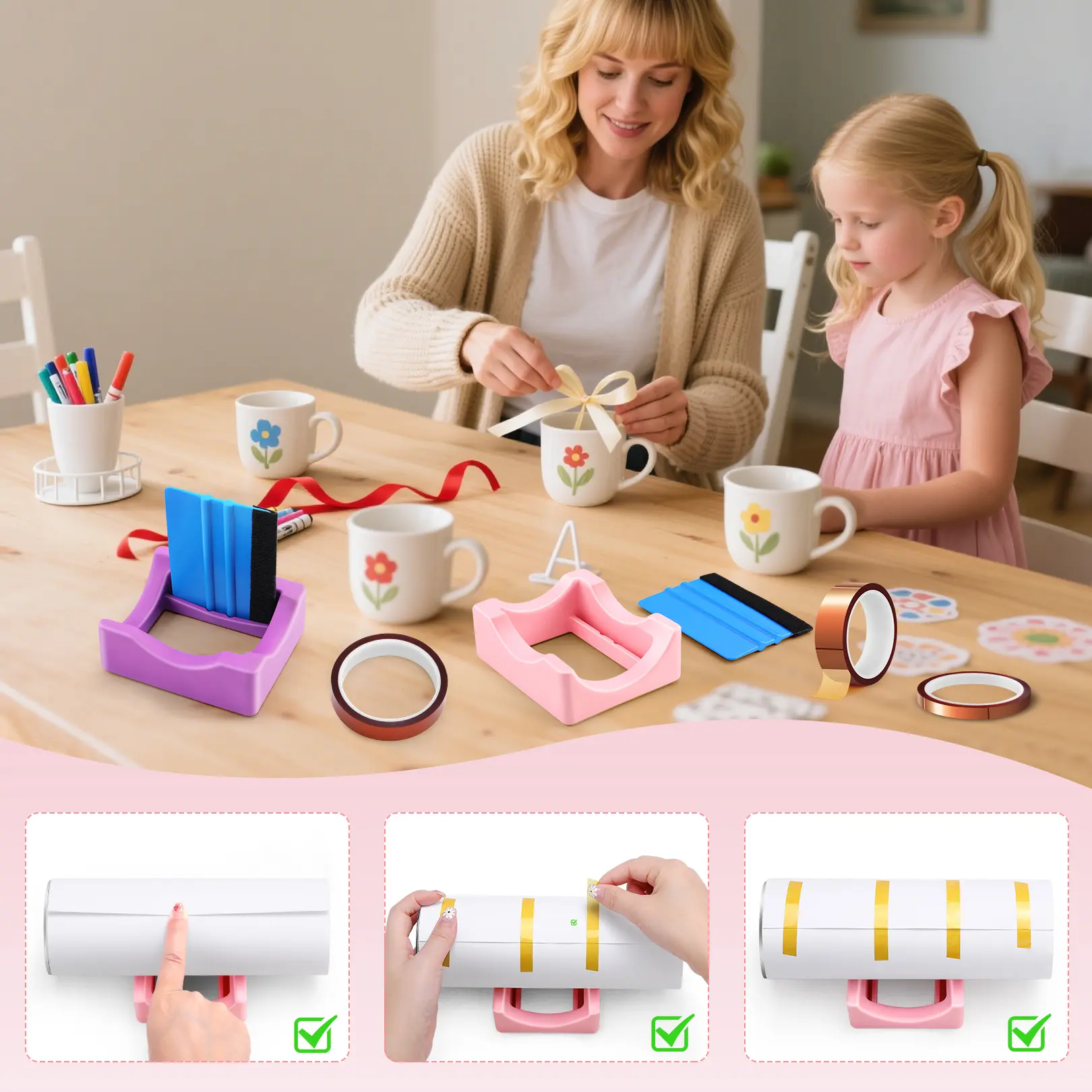 ·【Package Include】: You will receive 3 rolls of heat resistant tape set(0.39"/0.78"/1.18")and Anti-Skidding silicone cup cradle with Built-in Slot and felt edge scraper. Add joy to your life, or give as a handmade gift to family and friends.