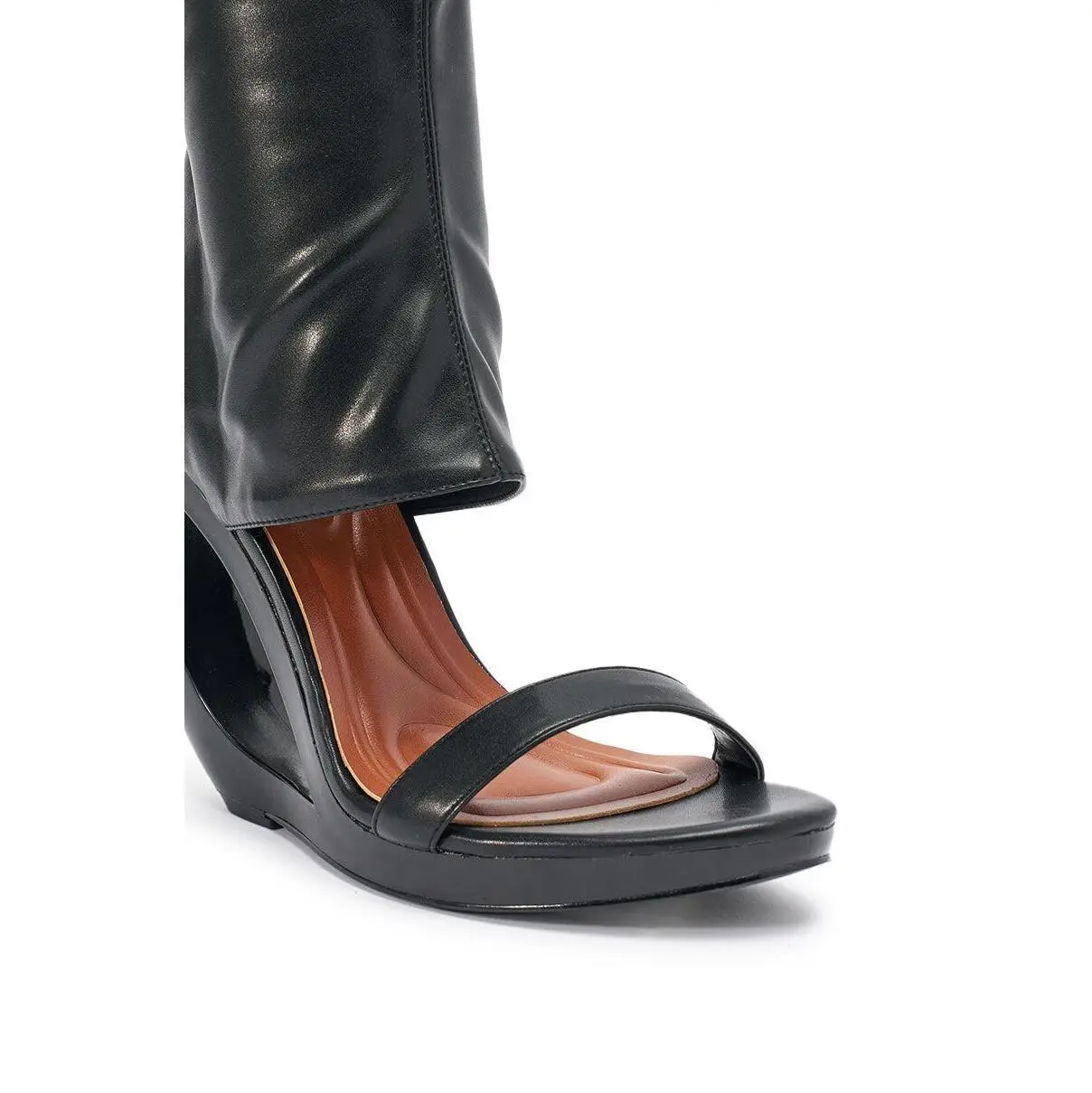 AKIRA GOLD DUMISANI BLACK WEDGE OPEN TOE BOOTIE #wedgesandals #summersandals #opentoesandals #heelsandals