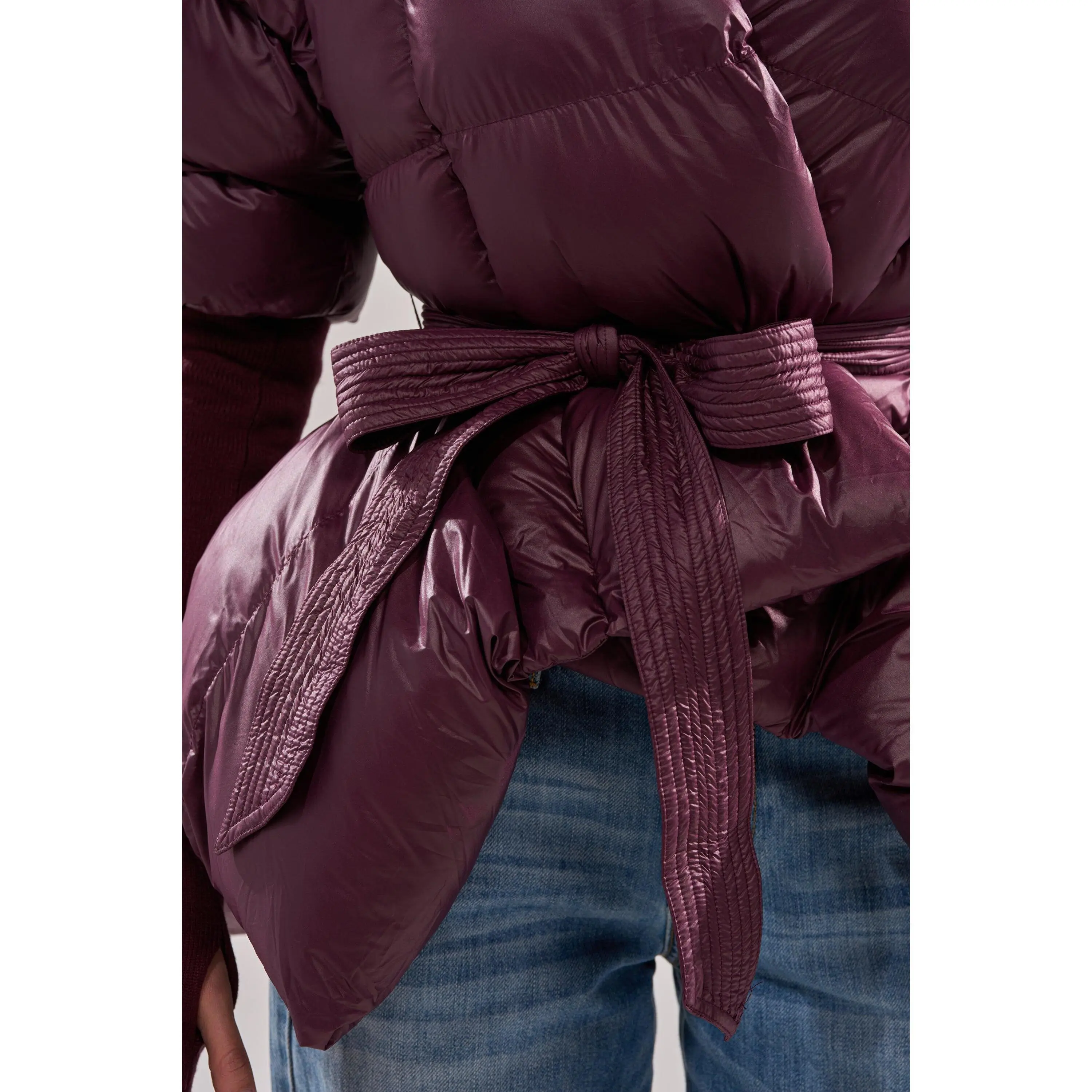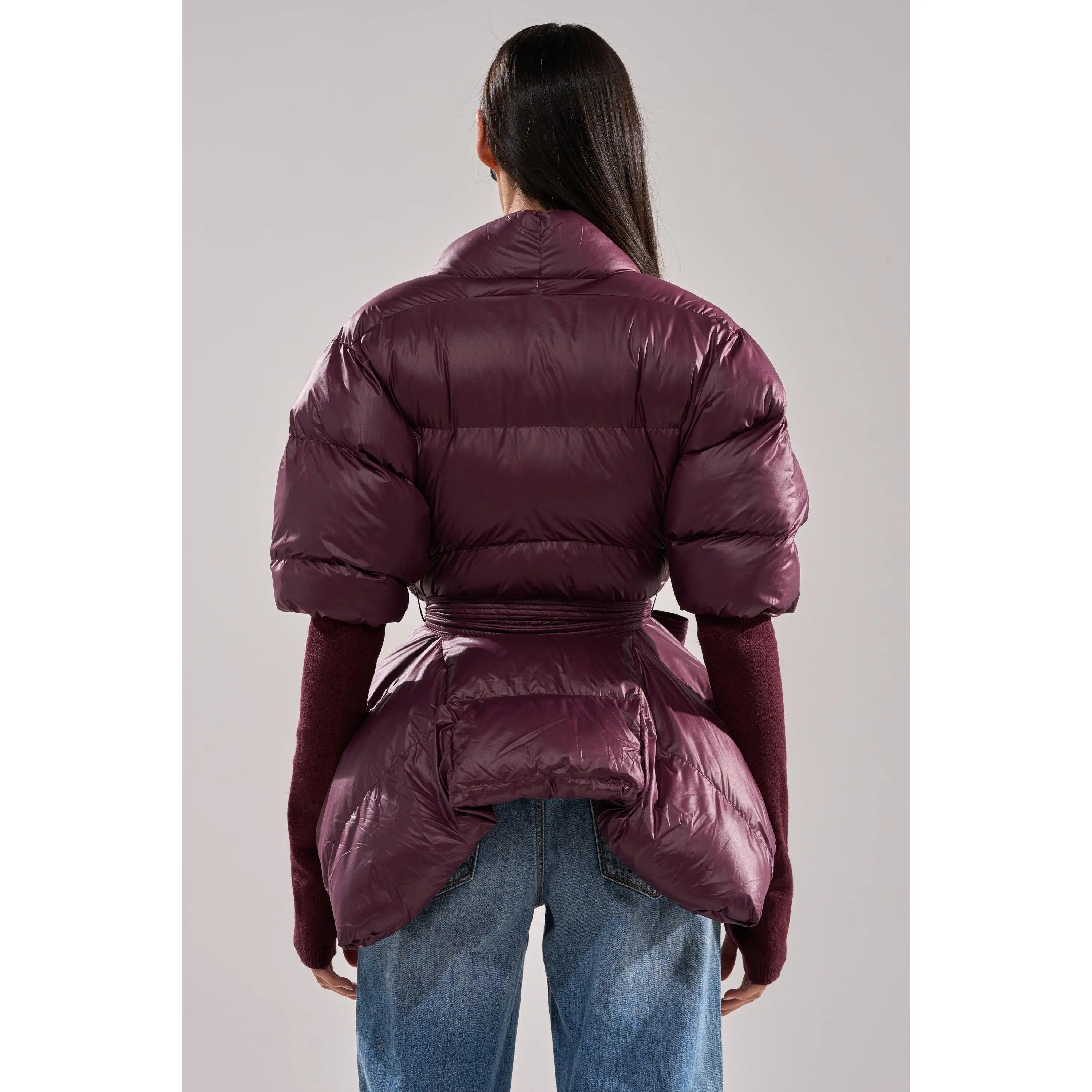 5. RIB SLEEVE PEPLUM PUFFER IN PURPLE