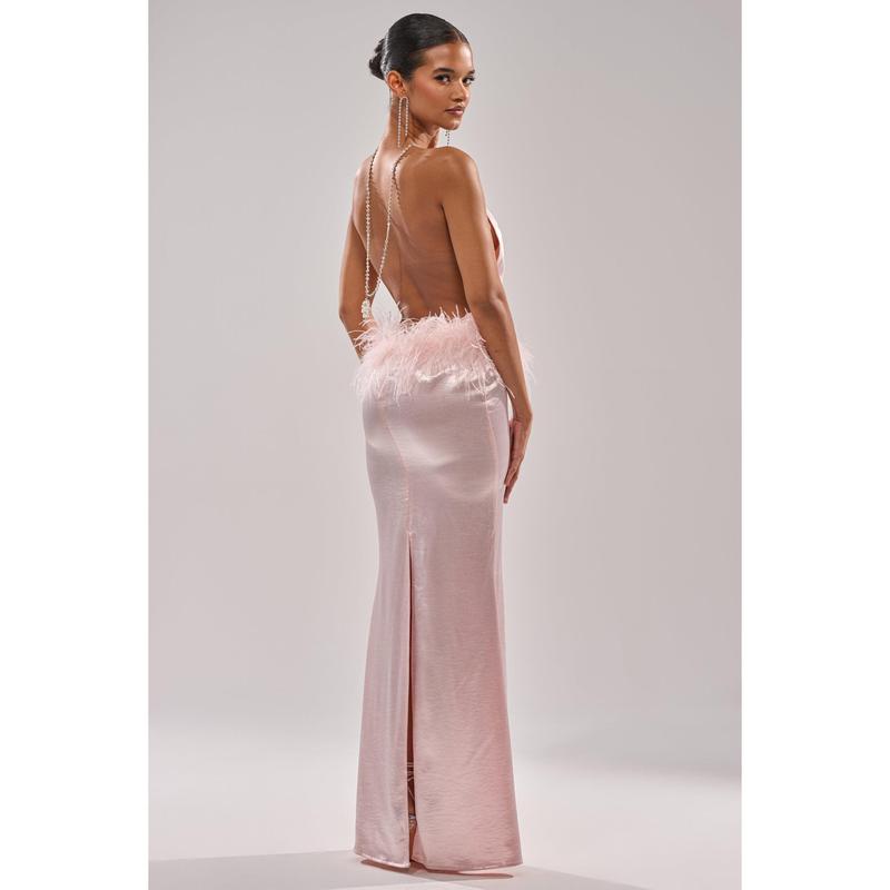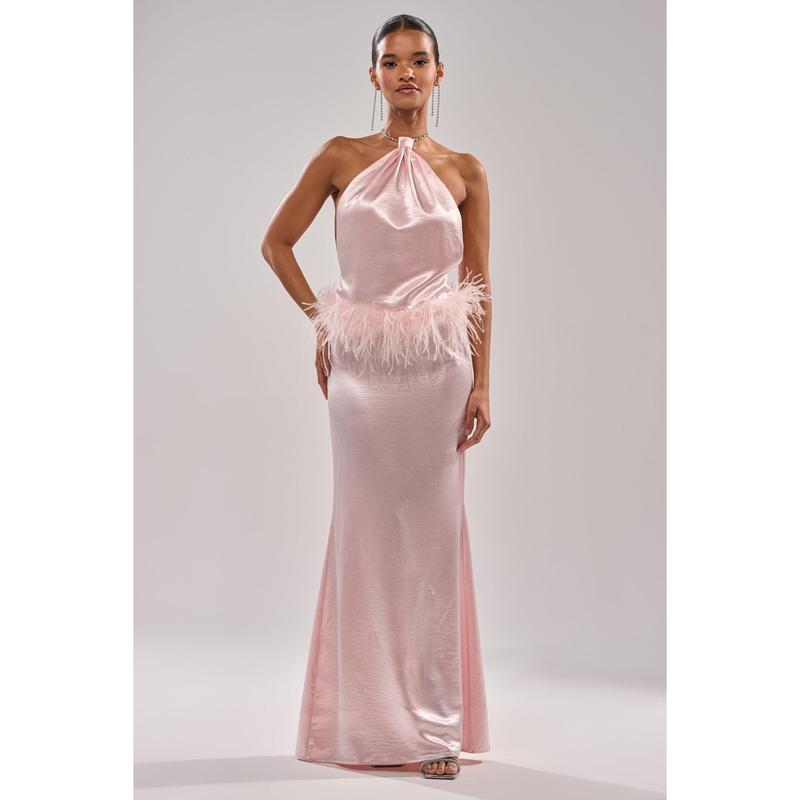 5. WHO IS SHE SATIN FEATHER MAXI DRESS
