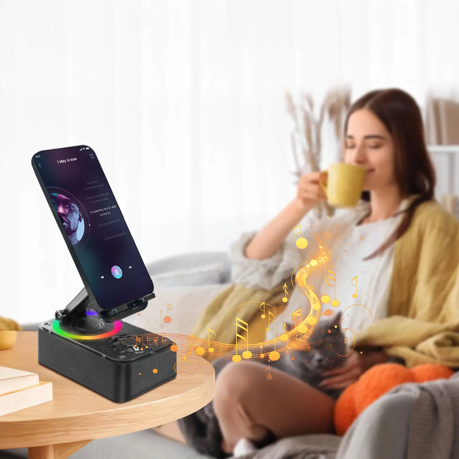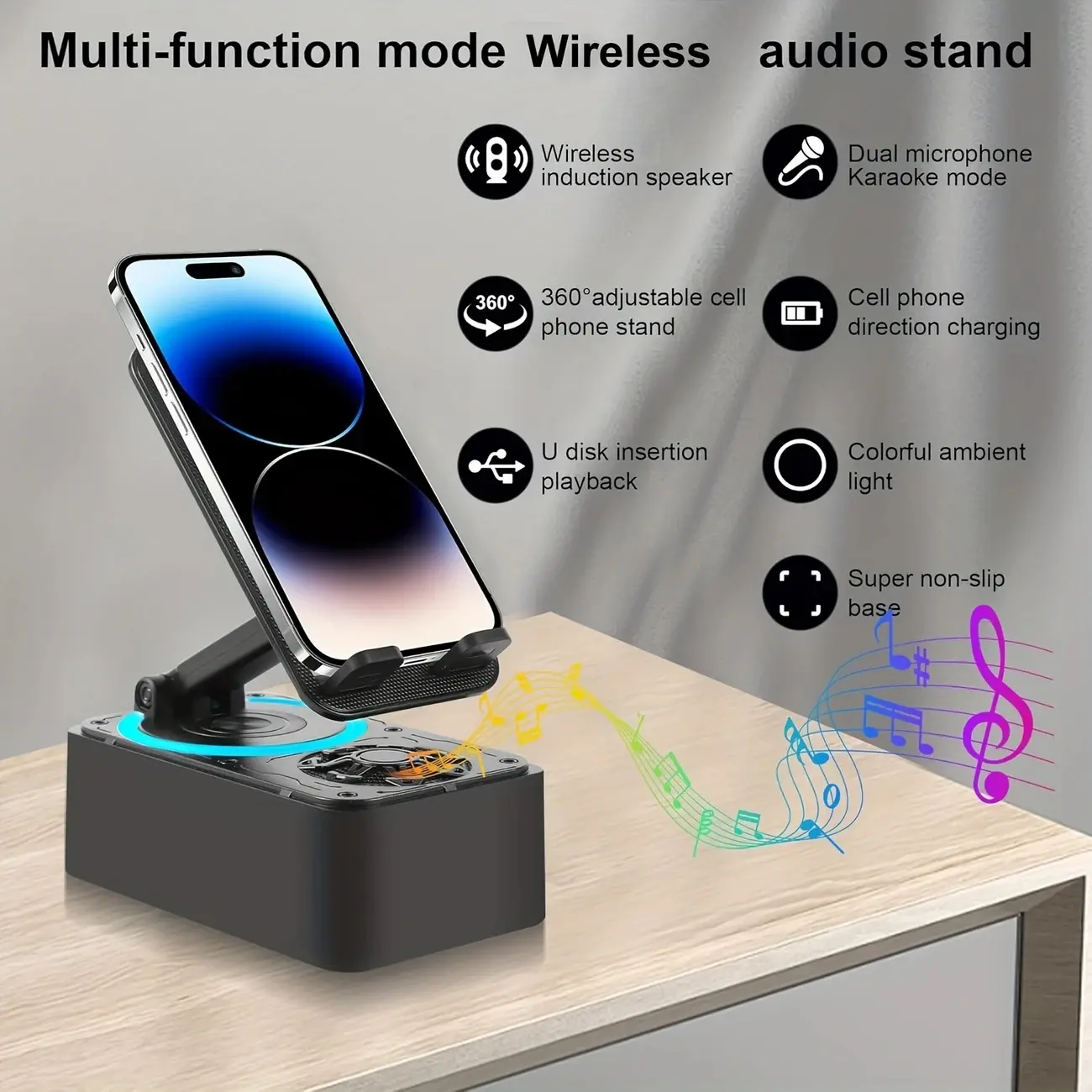 Free your hands with a phone/Pad stand, Bluetooth 5.3 speaker, and dynamic LED nightlight—all in one compact device. The speaker delivers crisp highs, rich mids, and enhanced bass for immersive audio; the LED ring adds ambient lighting (adjustable modes, not for bright illumination). Perfect for home, car, outdoor use, or as a gift for tech enthusiasts.