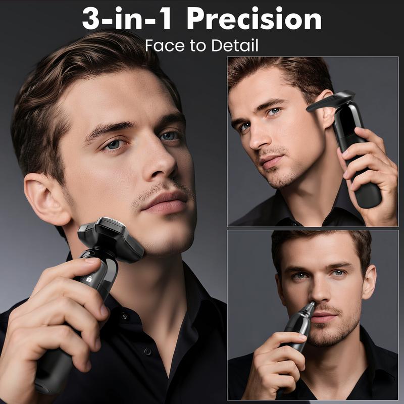 ·【3-in-1 Multi-Function with Travel Case】 Our shavers are fully washable. You can rinse the blades directly under the tap, use them in the shower with shaving gel, or clean them with a brush. Men's electric shavers are perfect for both wet and dry shaving.