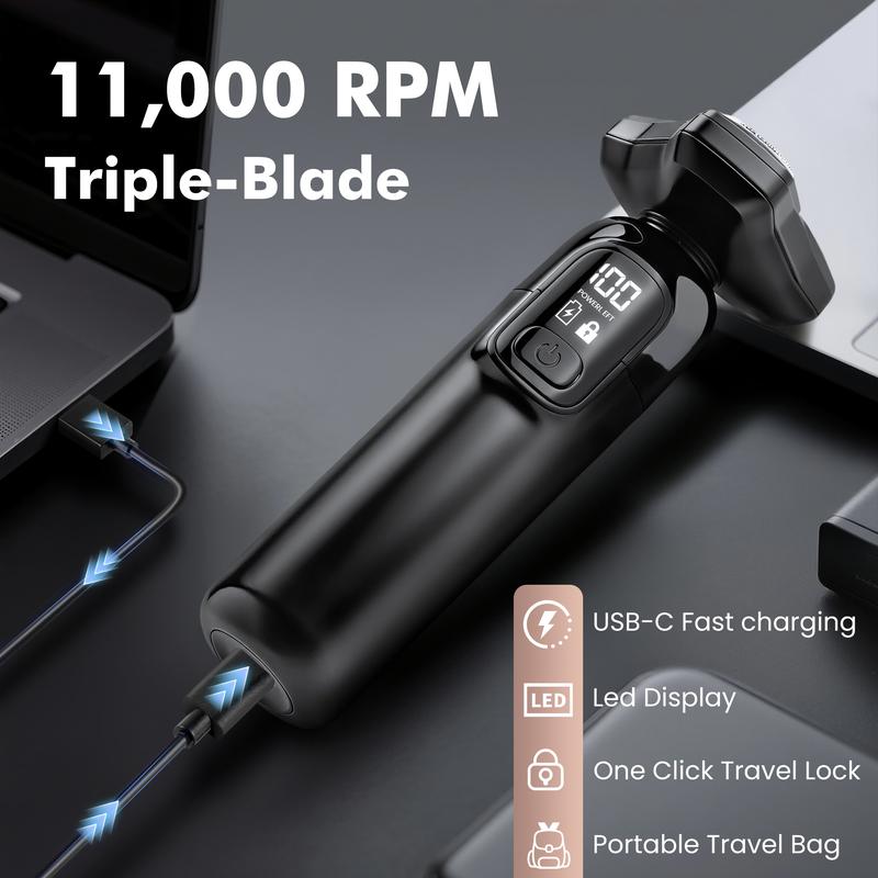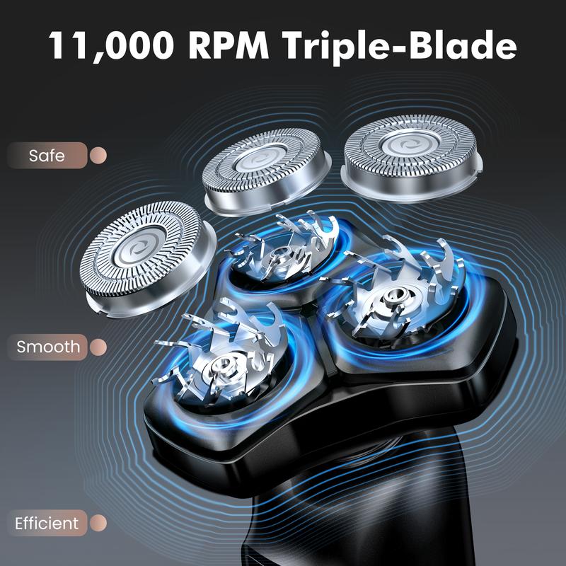 ·【11,000 RPM Hyper-Speed Shaving】 Our electric razor delivers up to 11,000 shaves per minute – giving you a perfect shave in half the time. This highly efficient beard removal reduces the effort of everyday shaving.