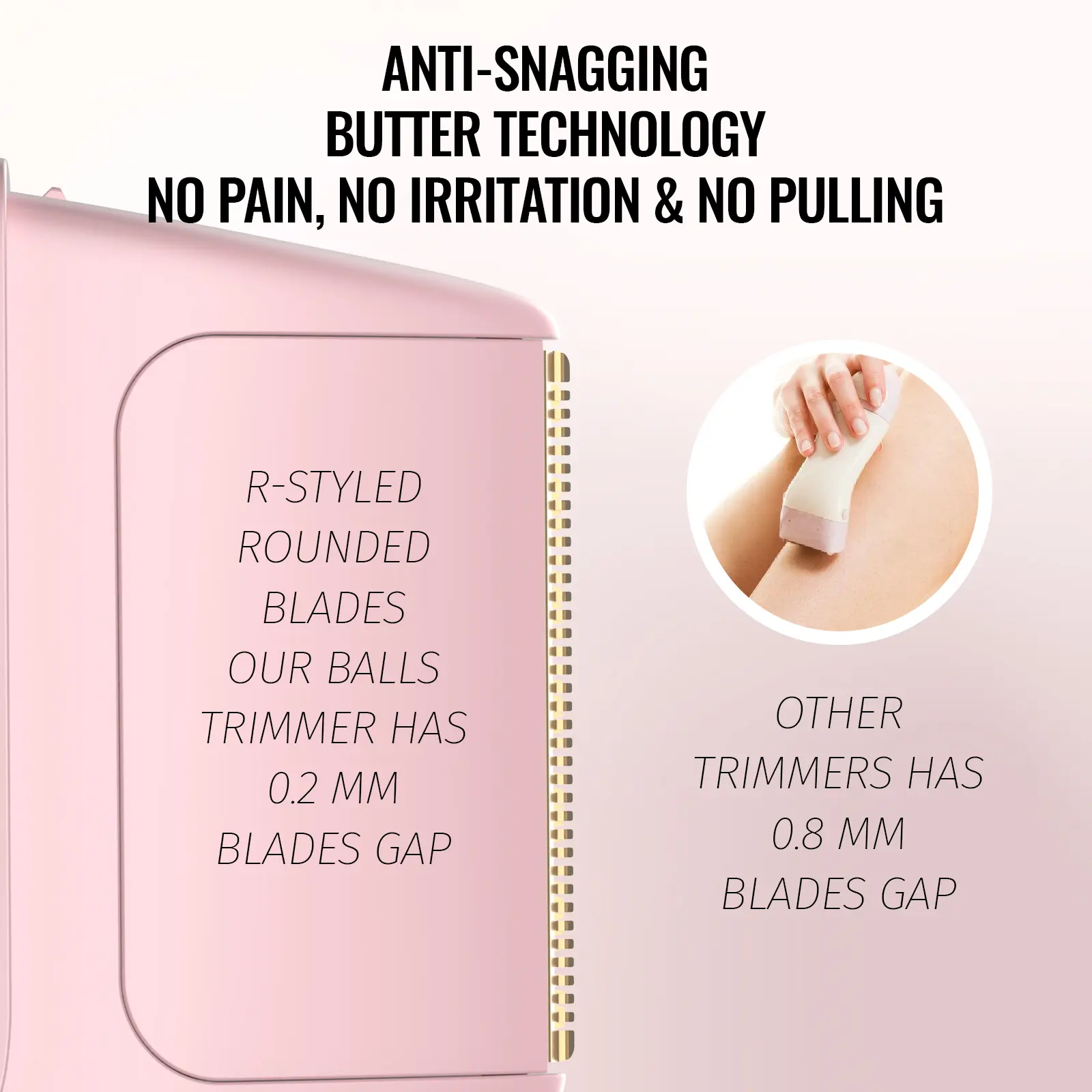 Easily trim hard-to-reach areas: The ergonomic I-shaped body design facilitates comprehensive control, and the unique V-shaped blade head can trim narrow and complex areas such as the back, armpits and buttocks.