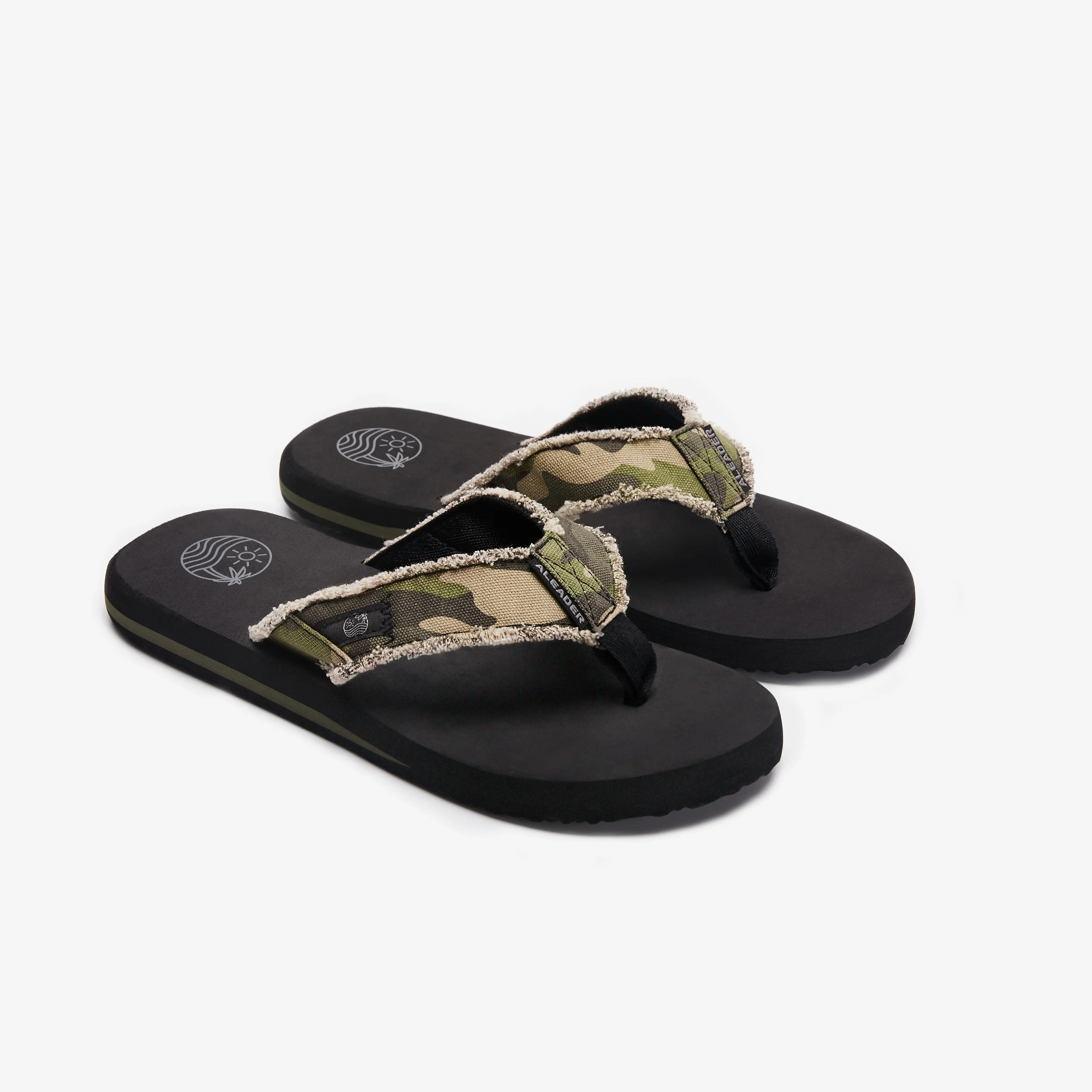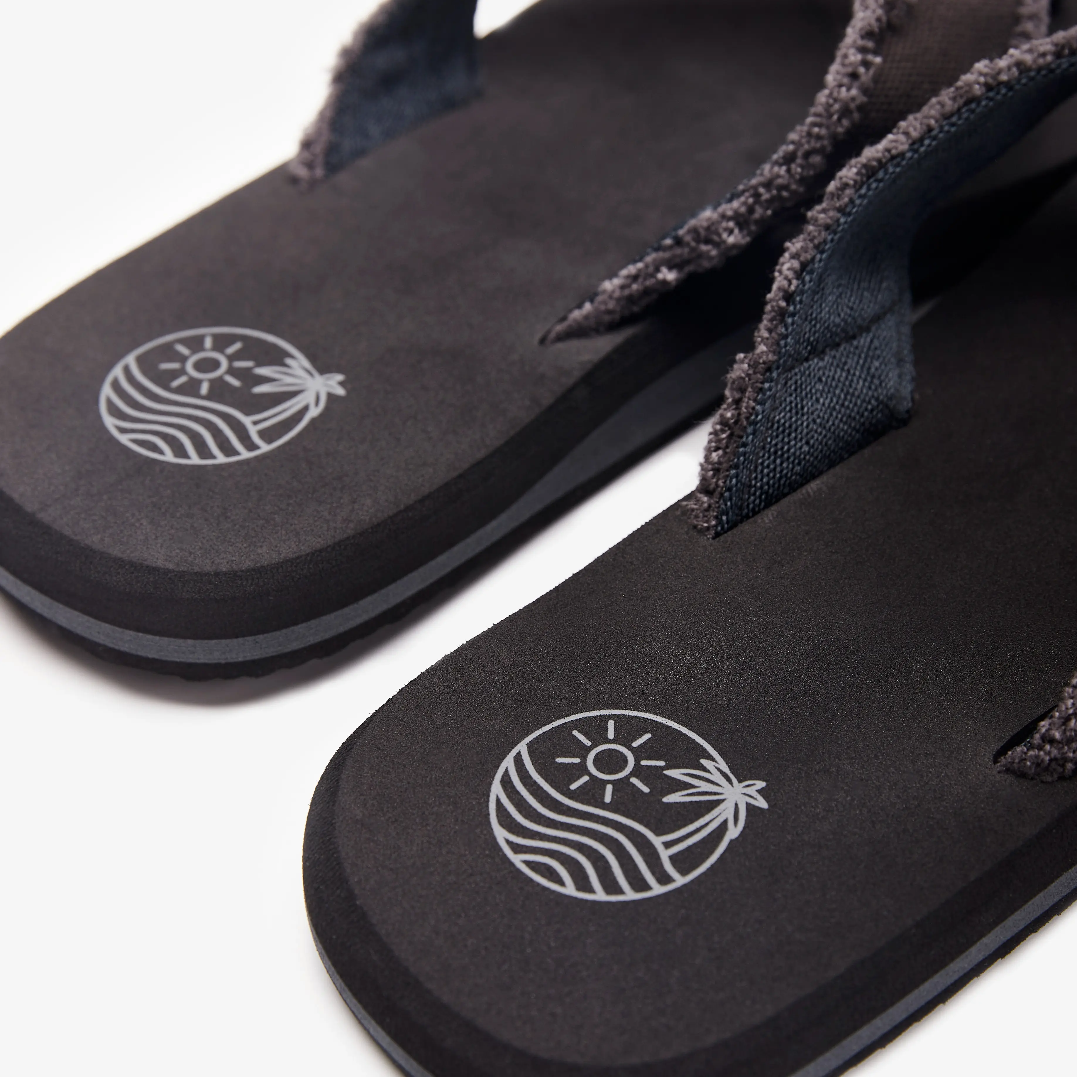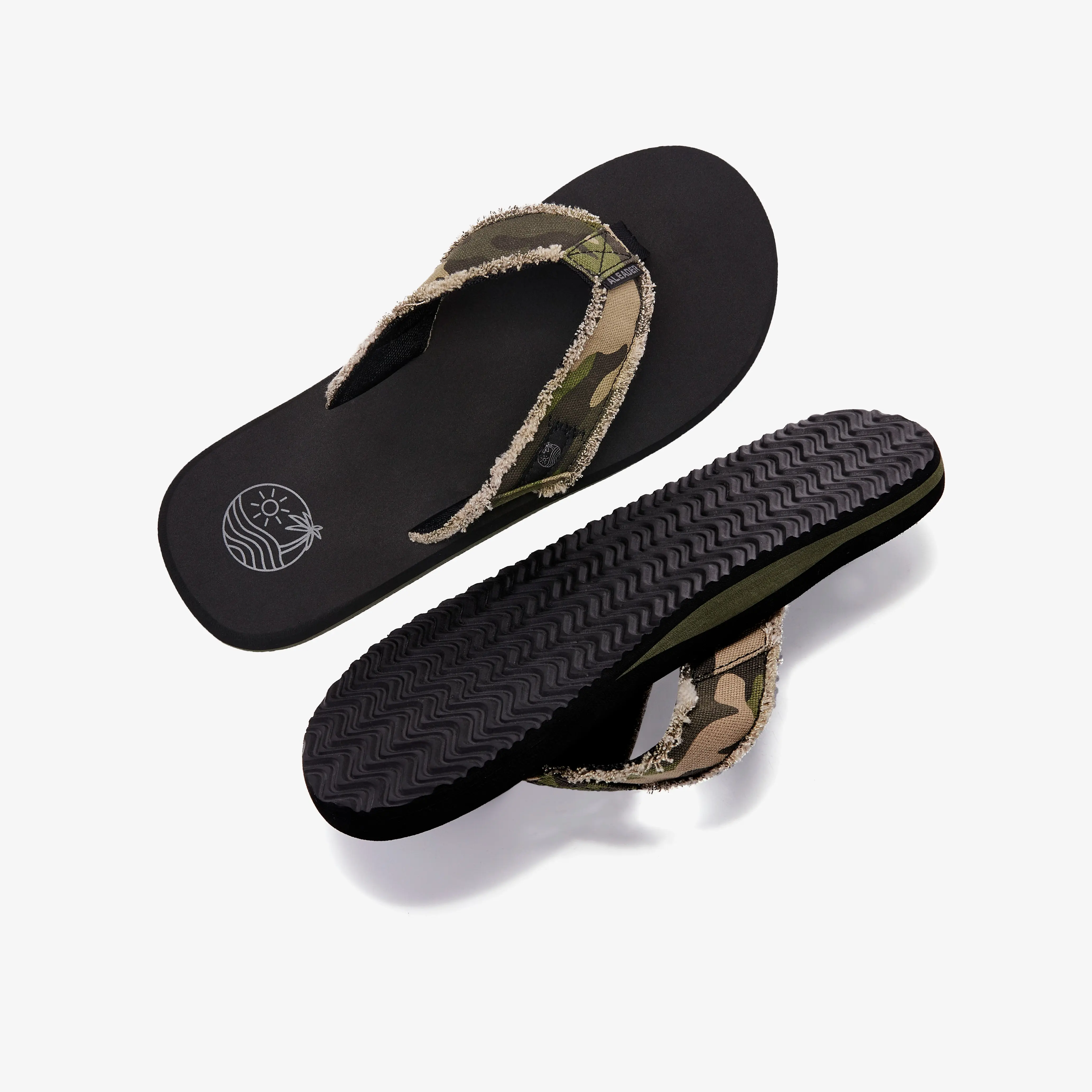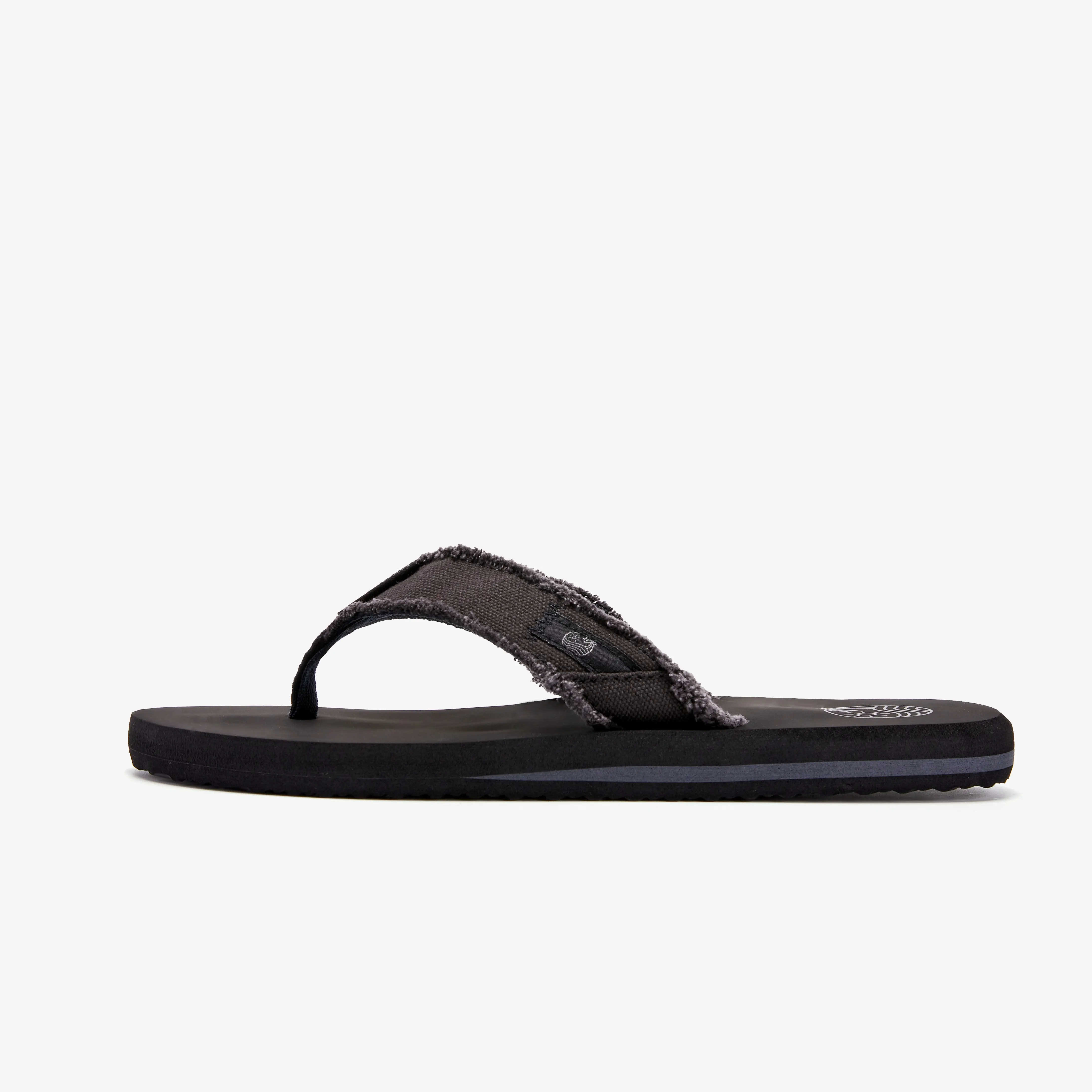 ·● Thong sandal featuring washed distressed canvas uppers for added style.