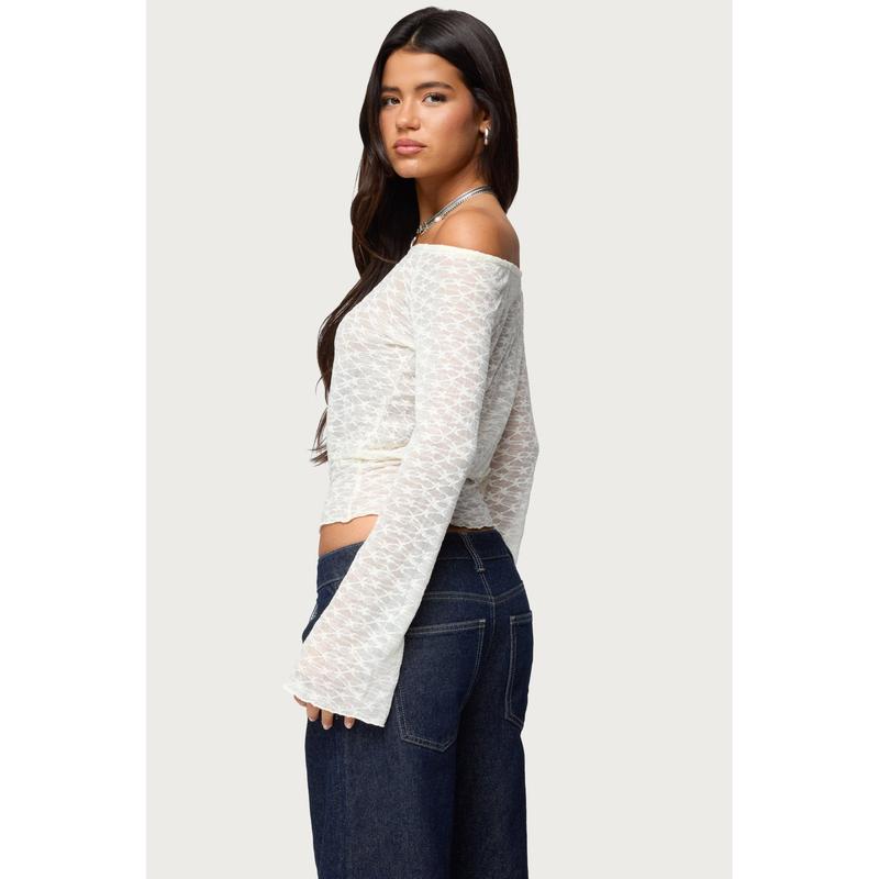 Alef Sheer Lace Off Shoulder Top