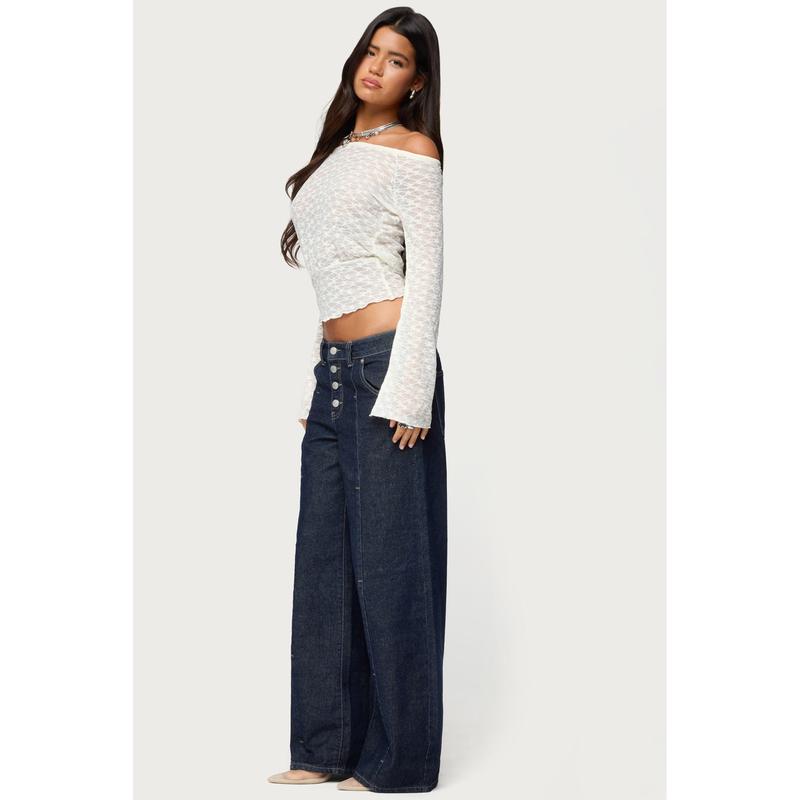 5. Alef Sheer Lace Off Shoulder Top
