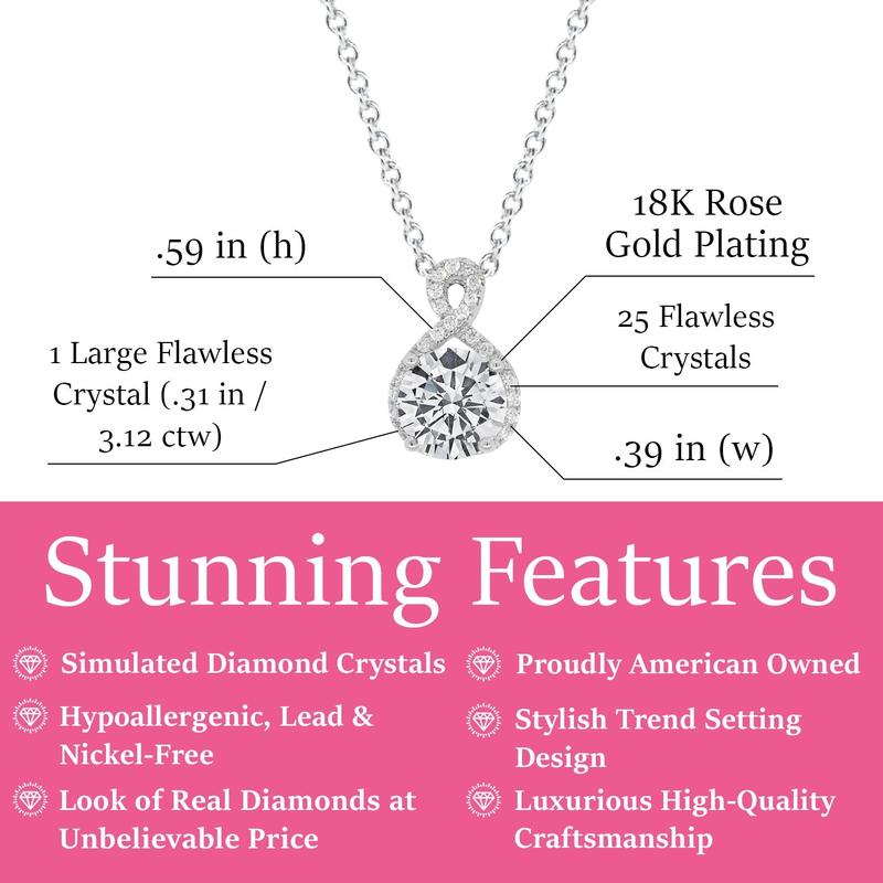 Introducing the Alessandra 18k White Gold Plated Infinity Halo Pendant Necklace with Simulated Diamond Crystals – a stunning piece that boasts an enchanting halo infinity design, meticulously handcrafted to absolute perfection. It's adorned with dazzling Simulated Diamond Crystals that capture and reflect light in the most exquisite way.