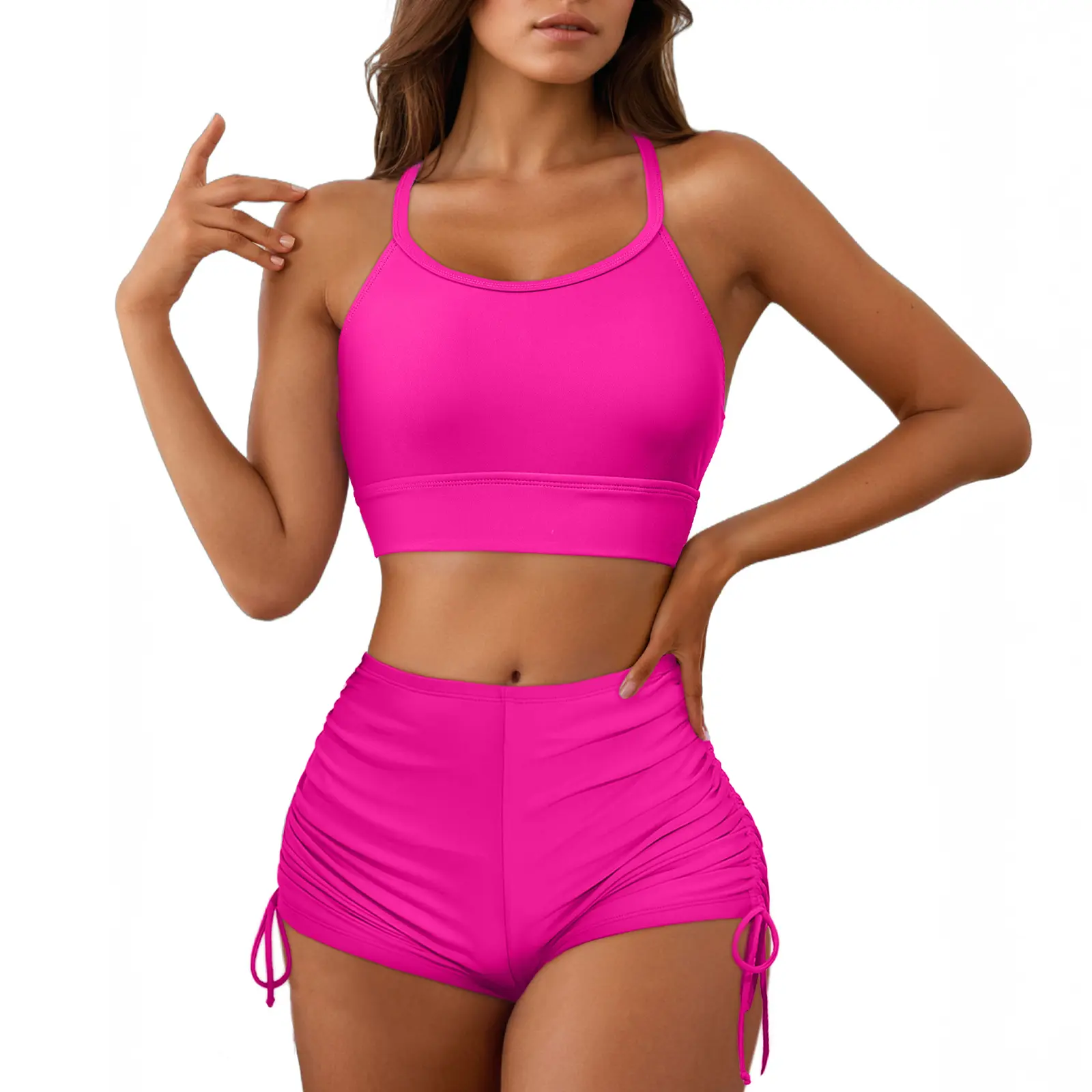 ·Crop Bikini Top: Features adjustable spaghetti straps, a stylish crisscross back, and a wire-free padded bra for support and a chic look.