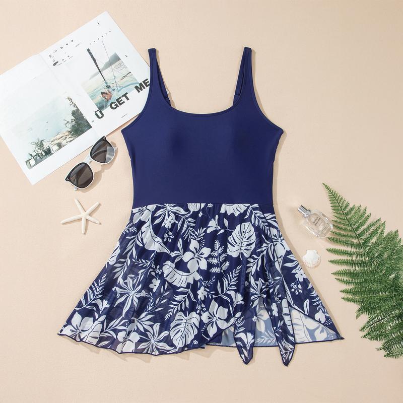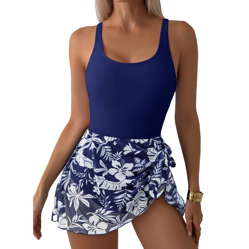 One Piece Swimdress: Features a delicate sheer mesh skirt and adjustable side tie for a versatile, elegant look.