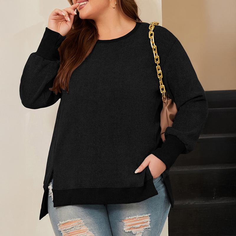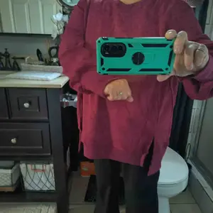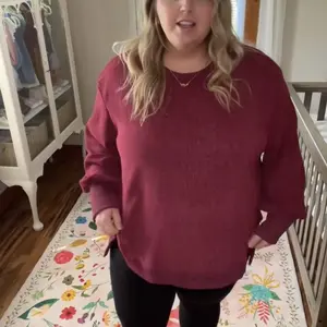 This top is comfy and flattering and I’m so glad I ordered the burgundy, it’s definitely giving cozy, Fall vibes. For a trendy, oversized look I’d order up one size. I typically wear a L and this is a 1X and it looks great over leggings. The back is slightly longer and covers backside well. The sleeves and sides have slits that give a modern style to it.
