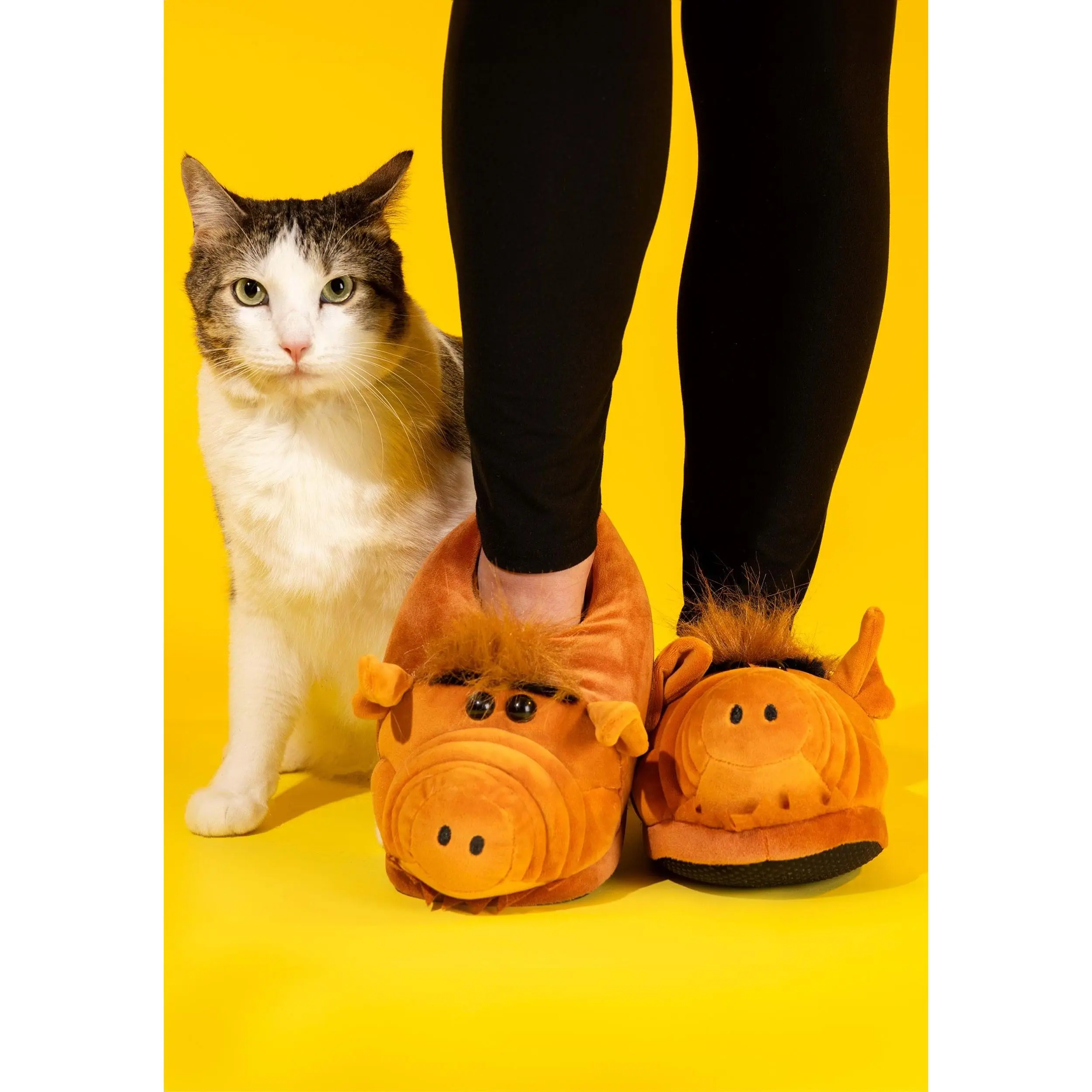 These bad boys are crafted from 100% polyester and bring Alf’s iconic snout right to your feet. Complete with those signature plastic eyes and embroidered nostrils. Inside, it's all plush comfort with fiber-filled interiors that practically give your feet a warm hug. The foam soles are like little clouds cushioning your every step. And don’t worry about any unexpected slips – the anti-slip grips have got your back (or rather, your feet).