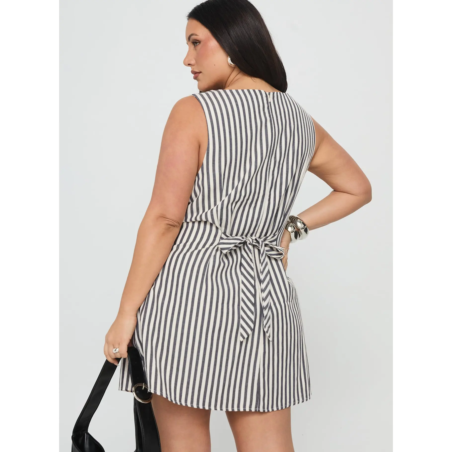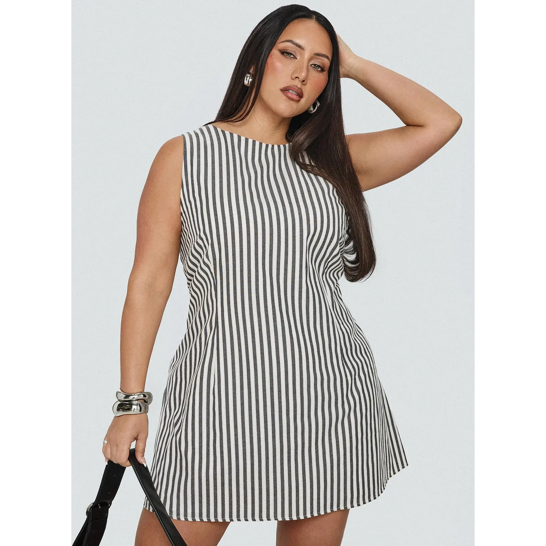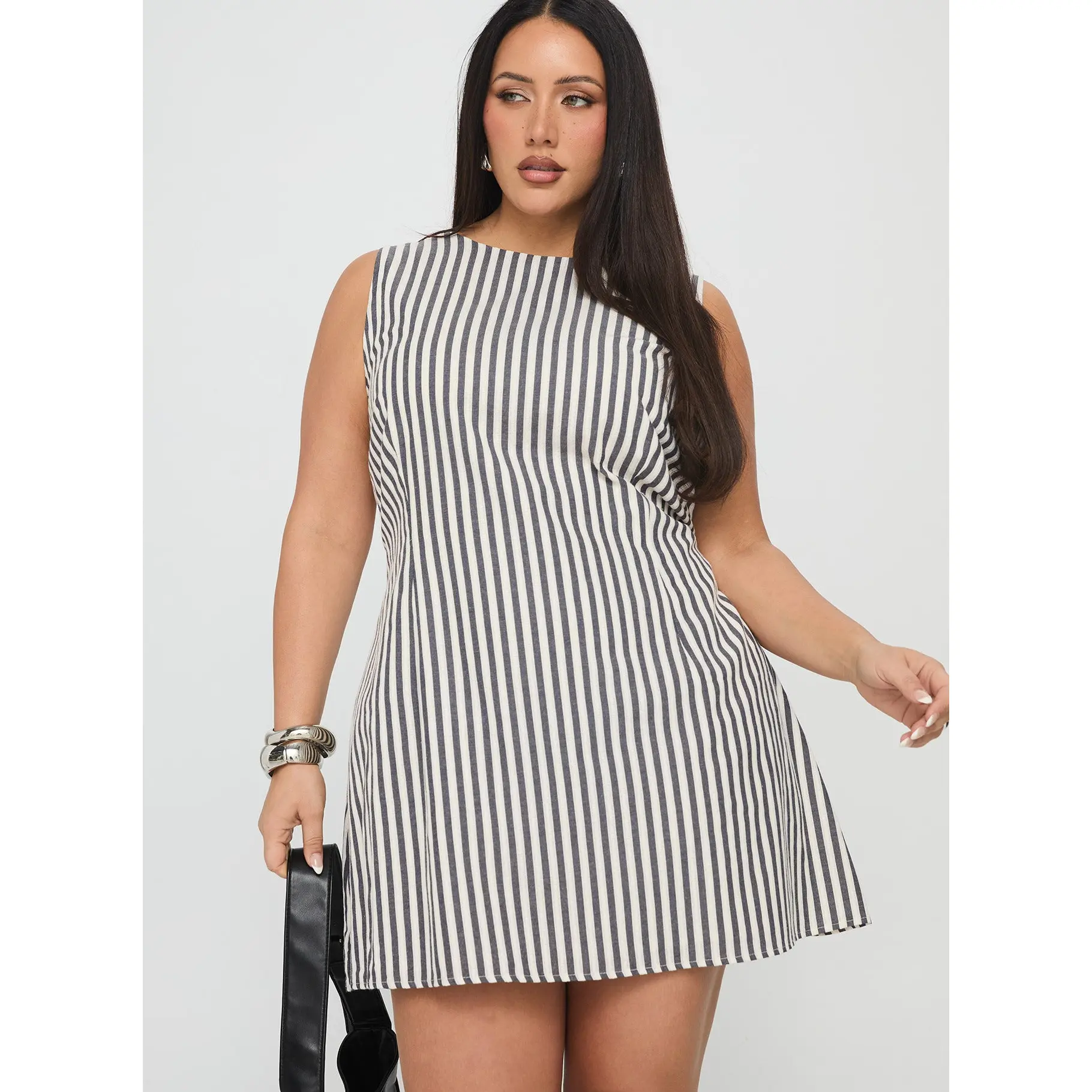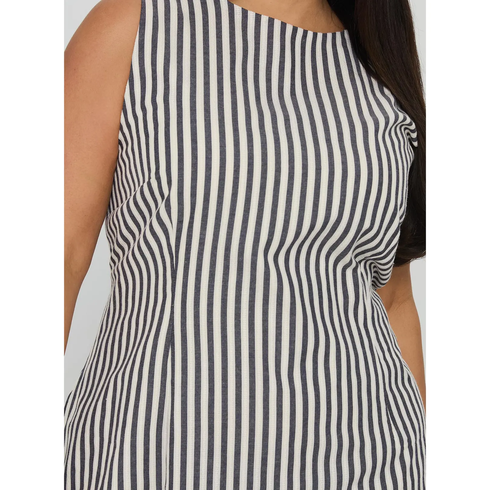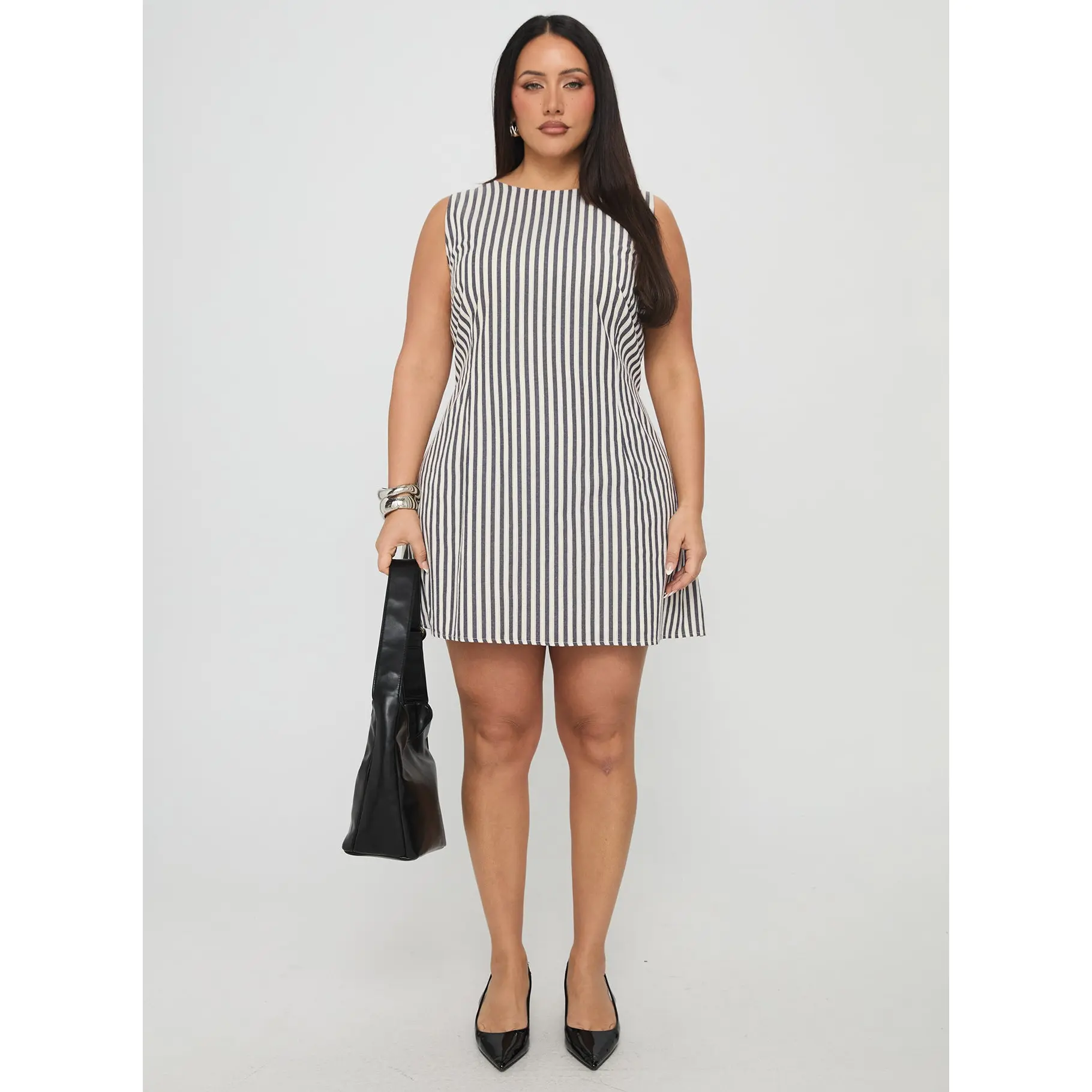 Alfalfa Shift Mini Dress Grey Stripe Curve
