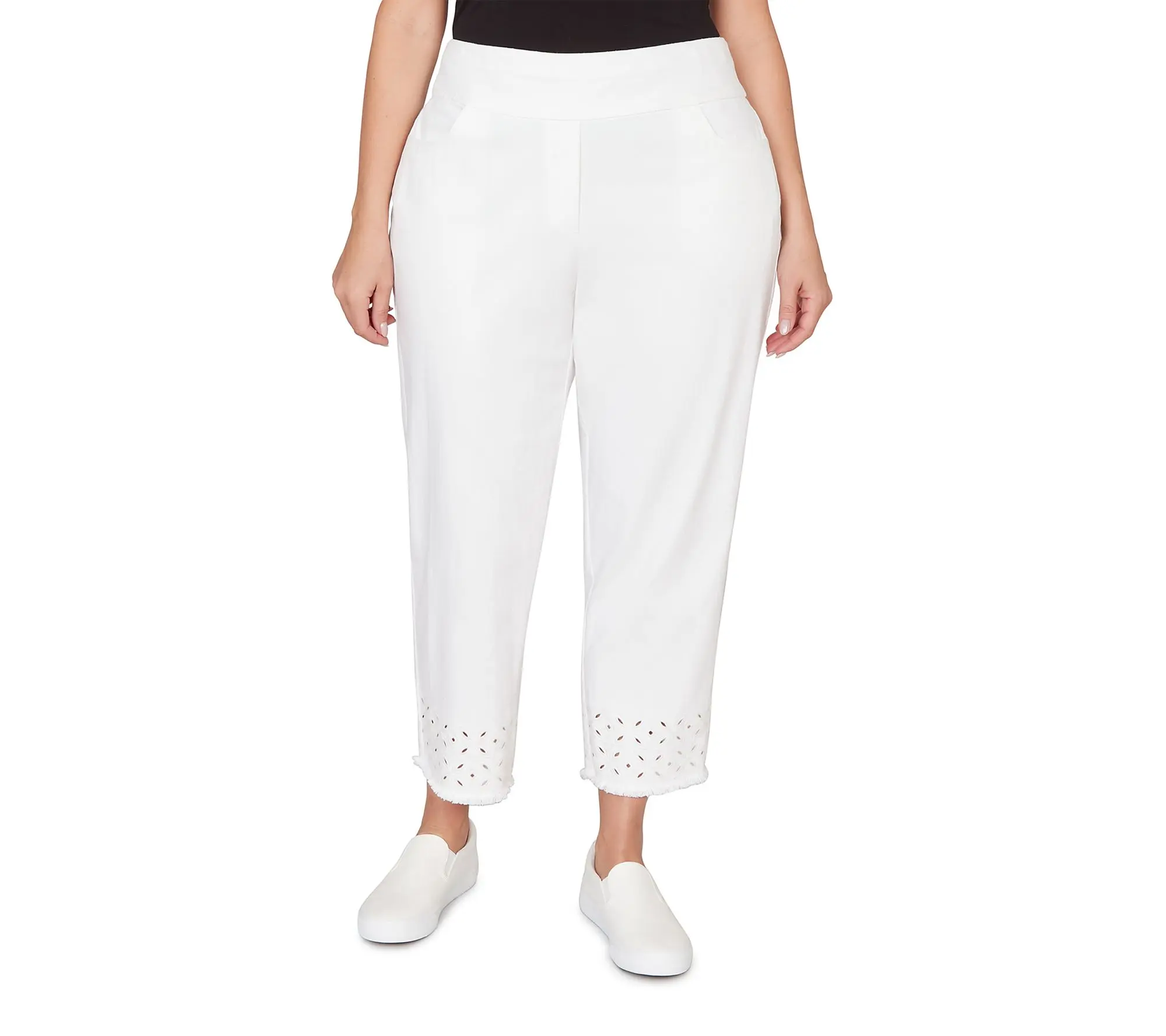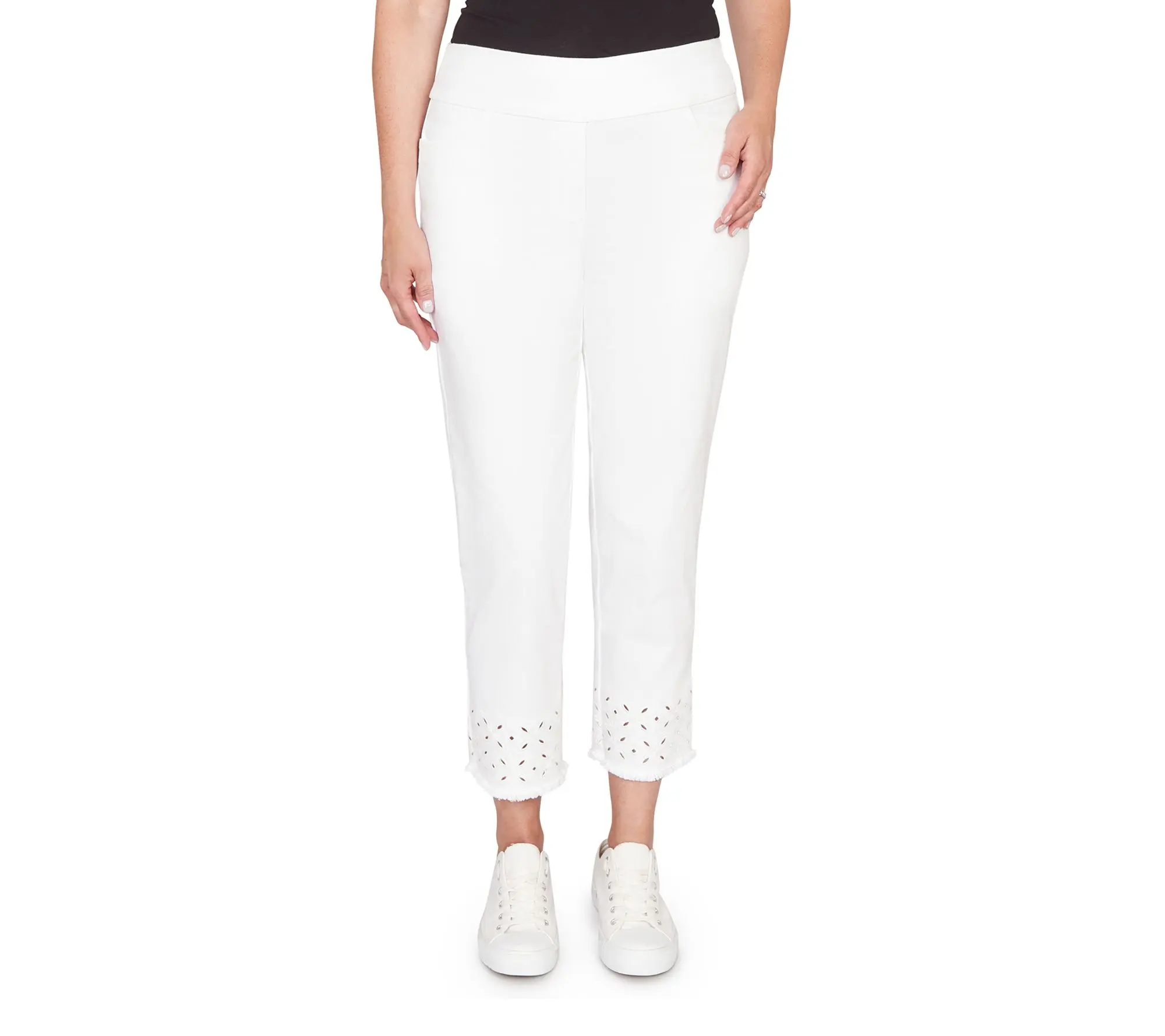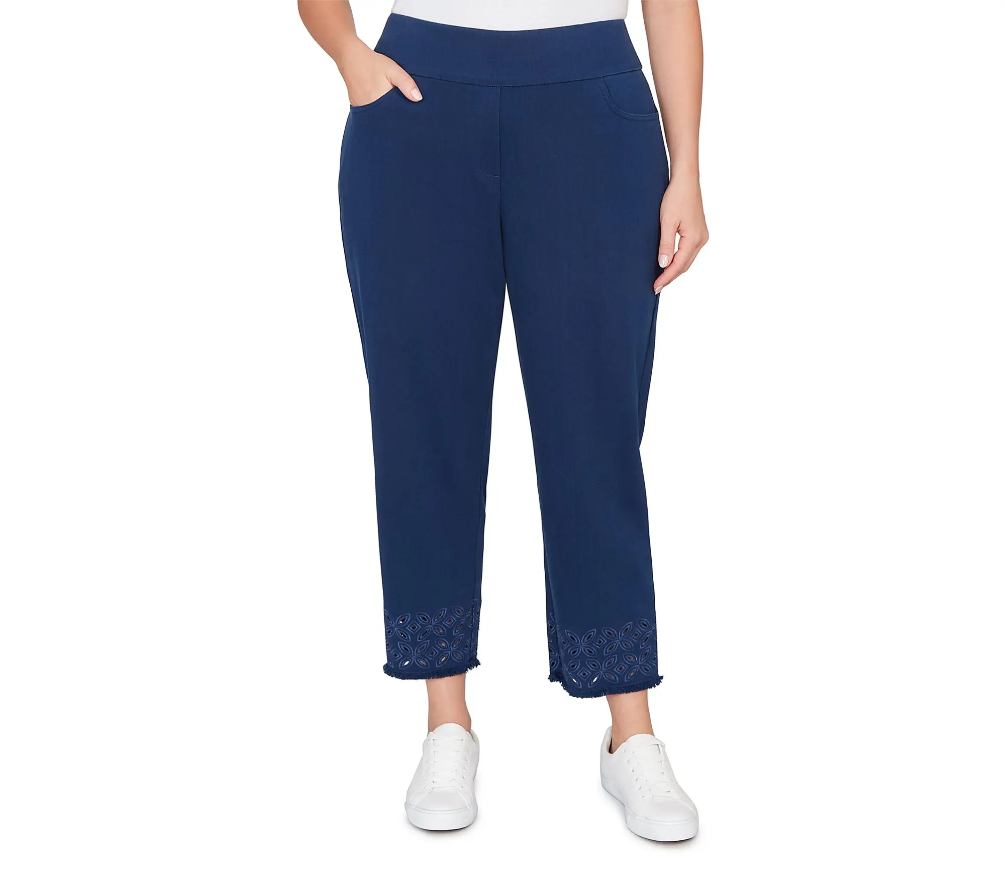 Whether you're strolling the boardwalk or meeting friends for coffee, these stylish stretch denim ankle pants deliver all-day comfort with a polished touch. Geo embroidery adds just the right amount of flair, while the ankle-length design keeps your look modern and fresh. From Alfred Dunner.