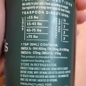 My one gripe is that I wish there was a dropper or pump we could purchase. Especially for small pets, dosing out a small portion gets kind of messy. I also noticed that the bottle says to discard after 90 days, but using the smallest recommend dose, the bottle will last you for 96 days. Would love the option of a smaller bottle!