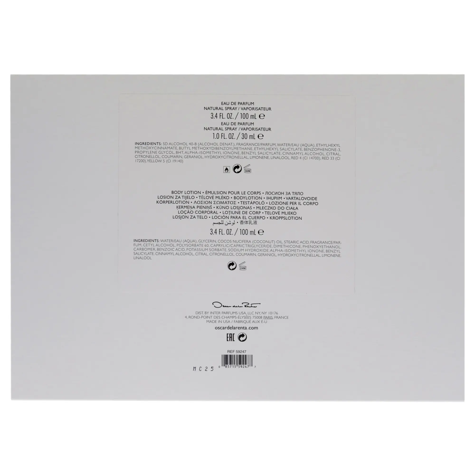 Launched by the design house of Oscar de la Renta. Glamorous. Feminine. Captivating. Inspired by the duality of women today. Fresh mandarin, elegant vanilla orchid and sensual musk come together for an unforgettable and effortless scent.