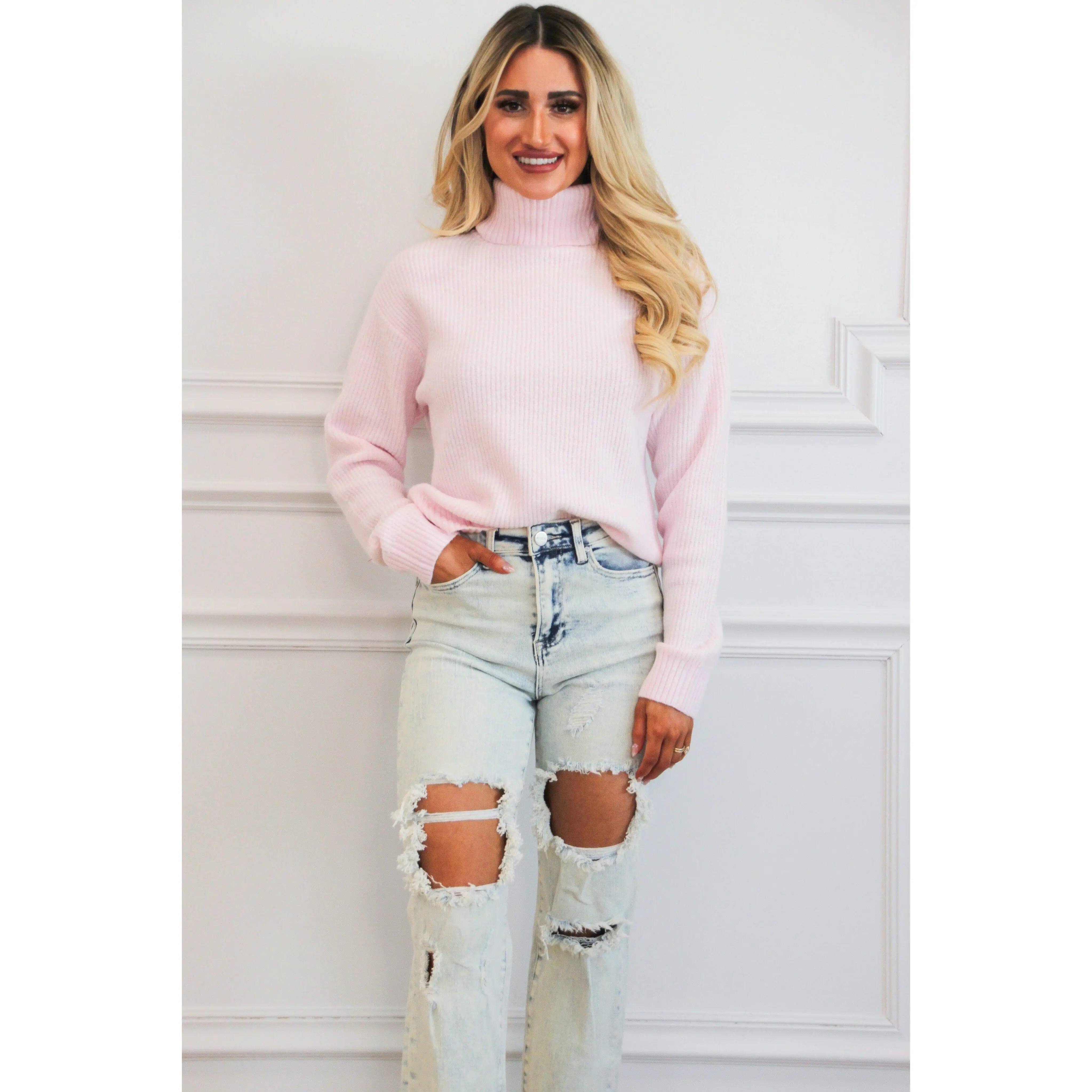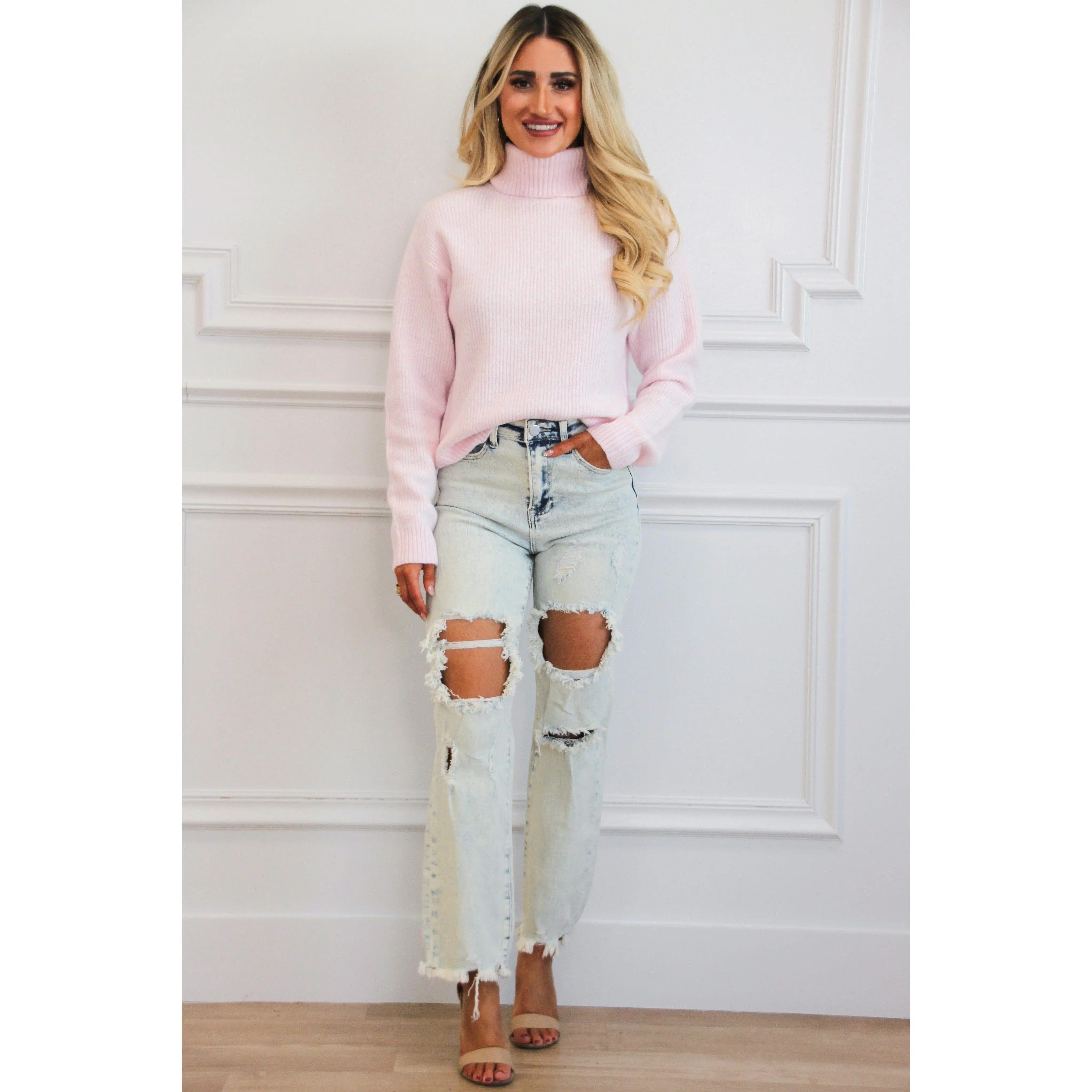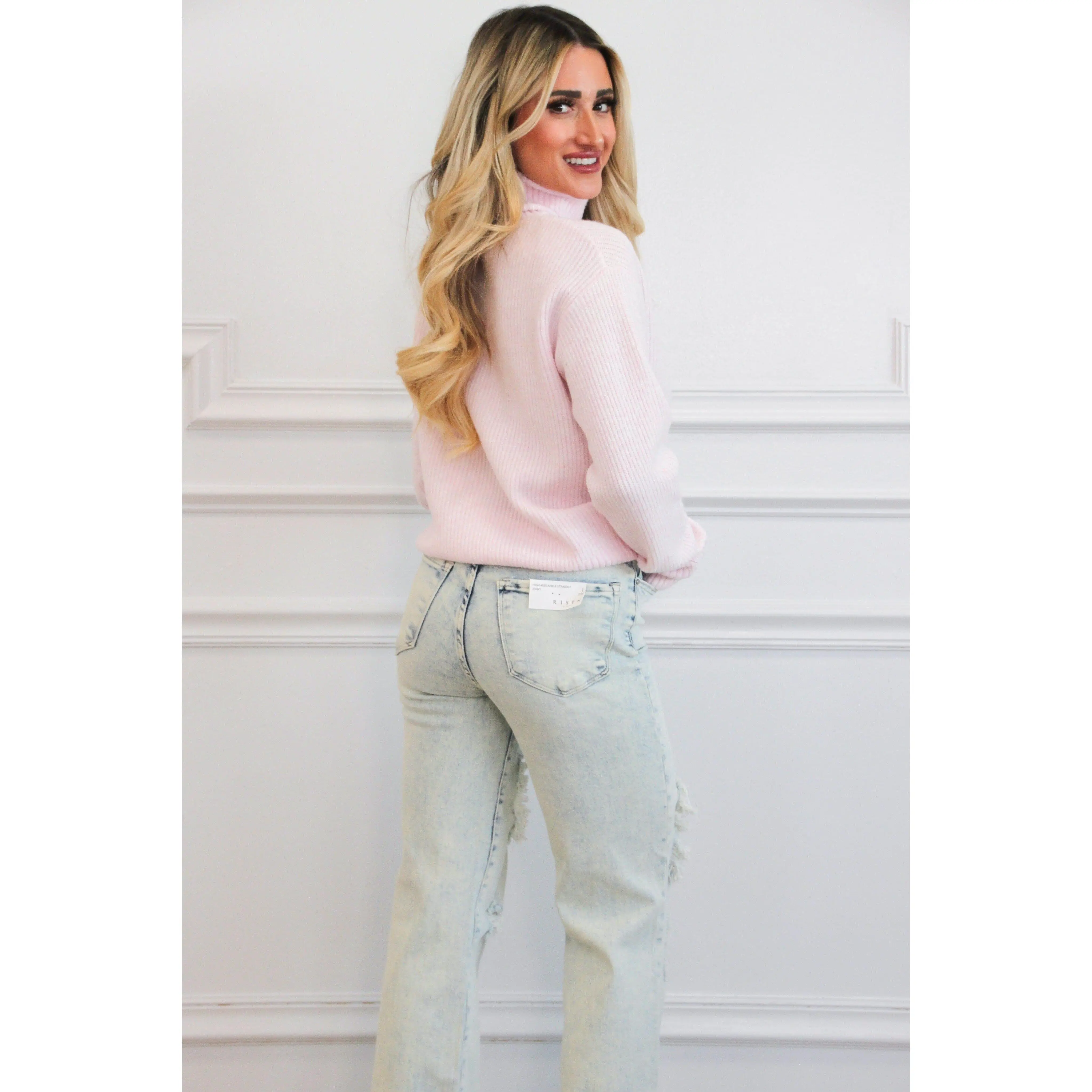 Alice Risen Distressed High Waisted Straight Denim: Acid Light Wash