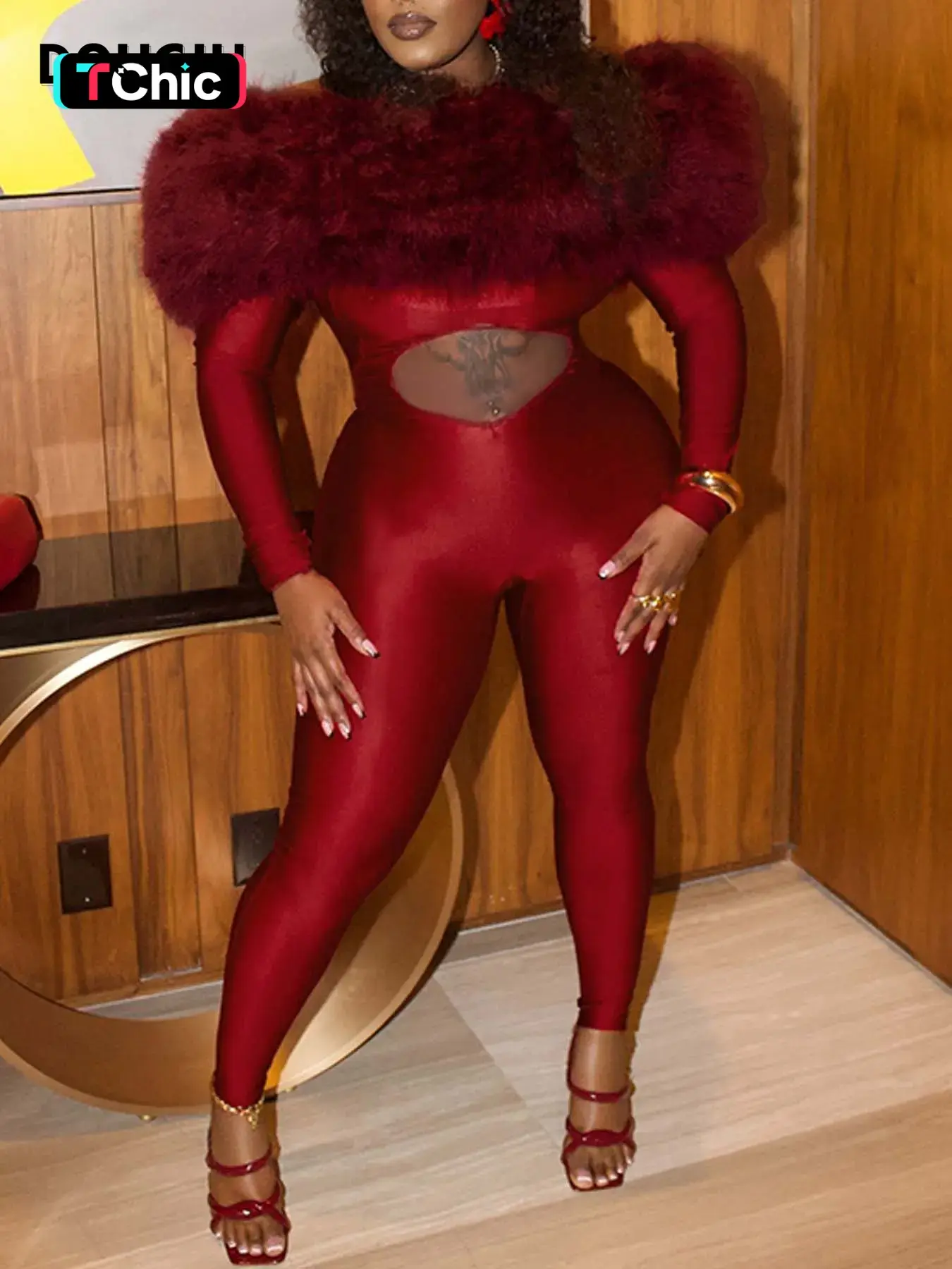 ❤️  #meetthelees #furjumpsuit #tiktokshop #datenight #burgundyoutfit