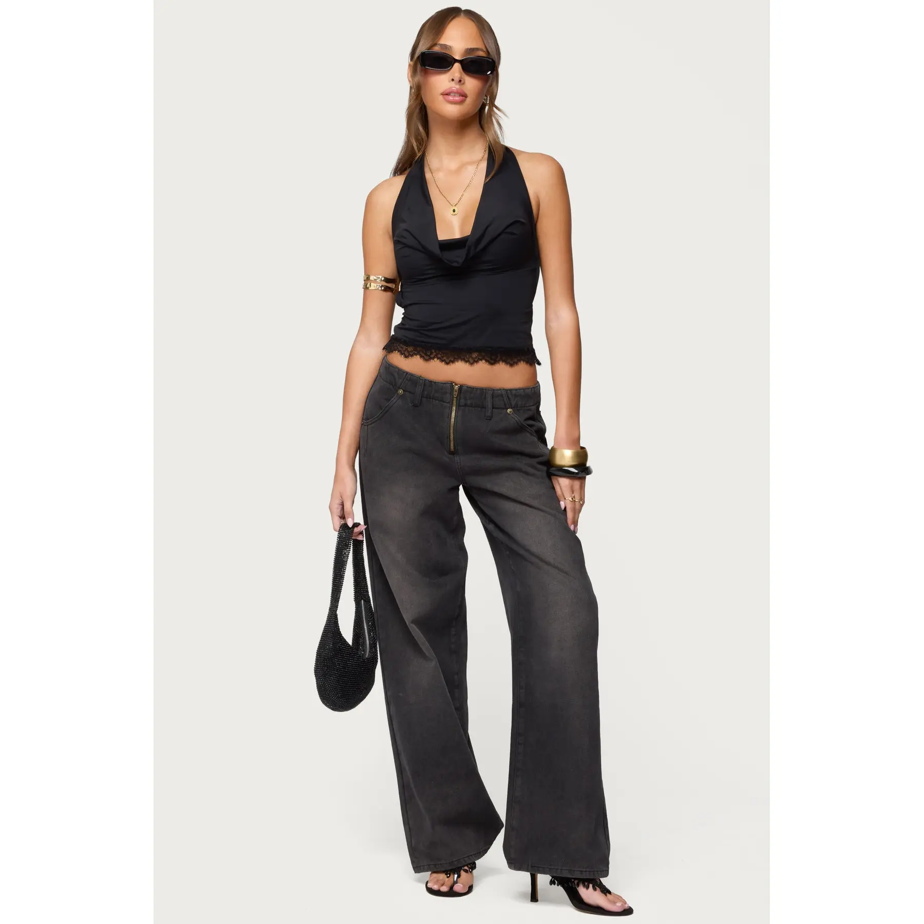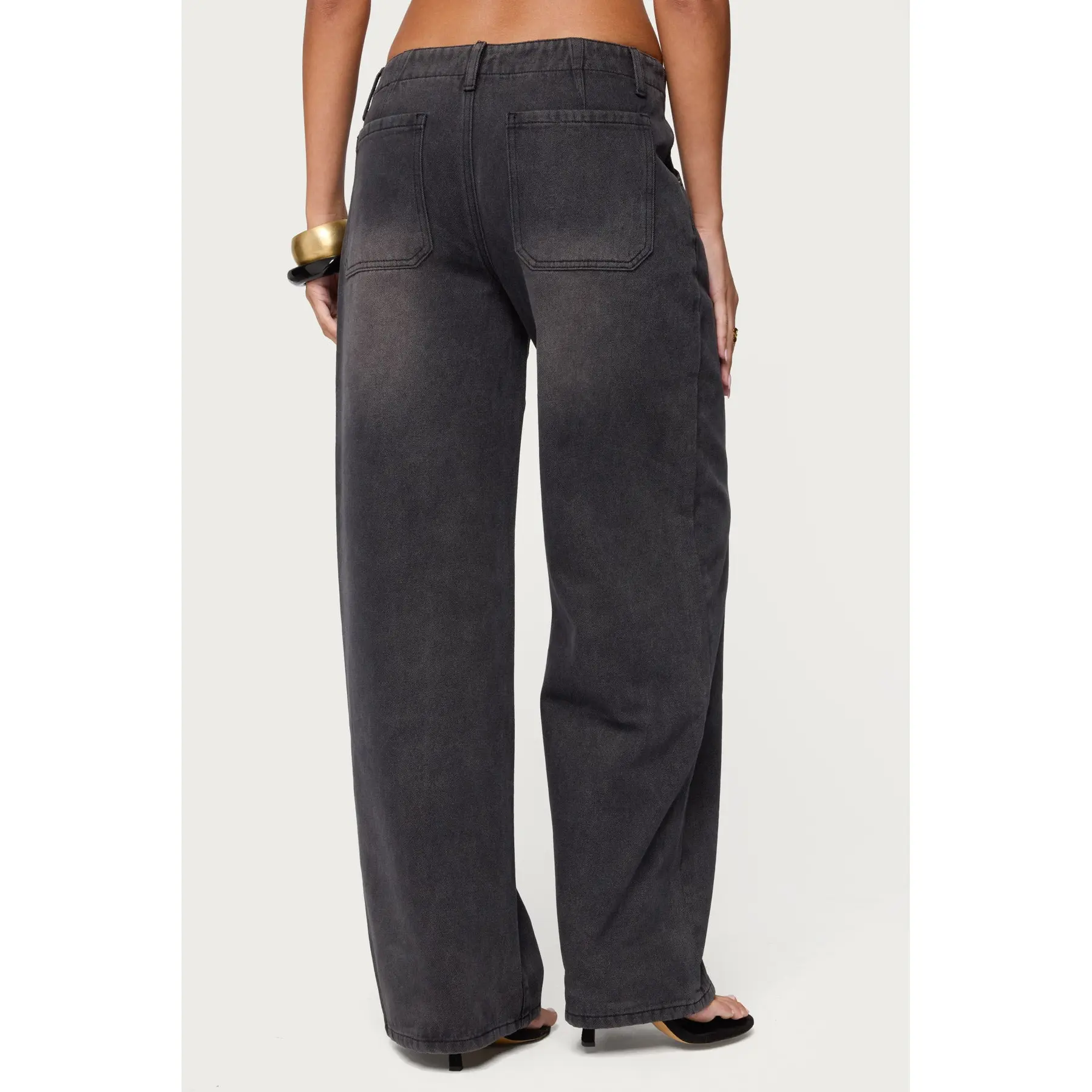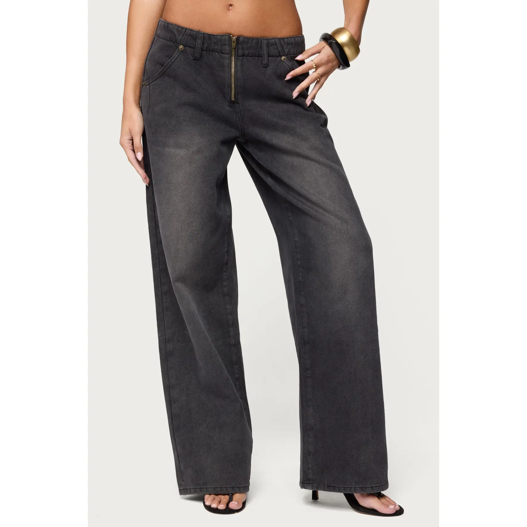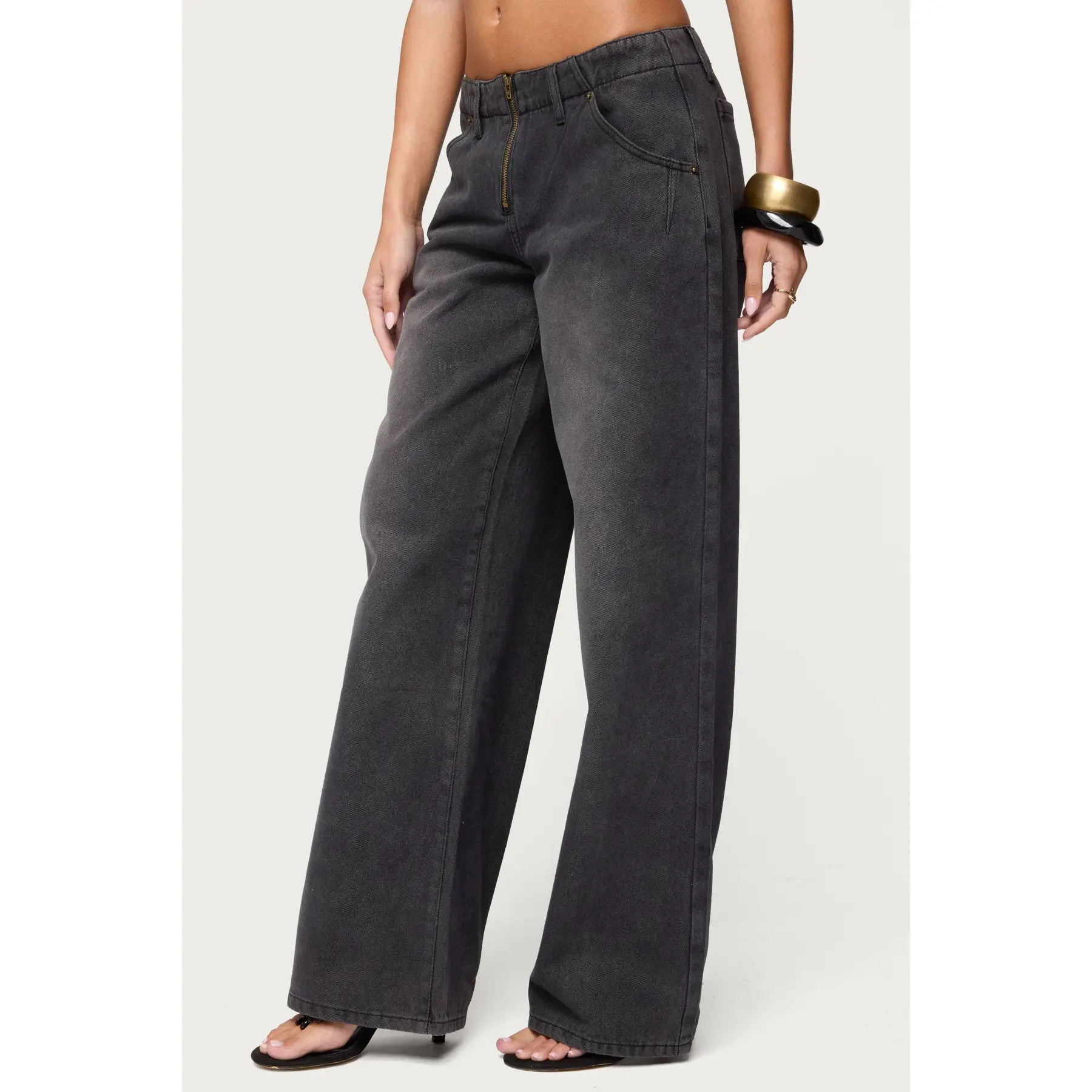 Obsessed with the front zipper detail🖤 @Edikted #ediktedjeans #blackjeans #widelegjeans #straighlegjeans #viraljeans
