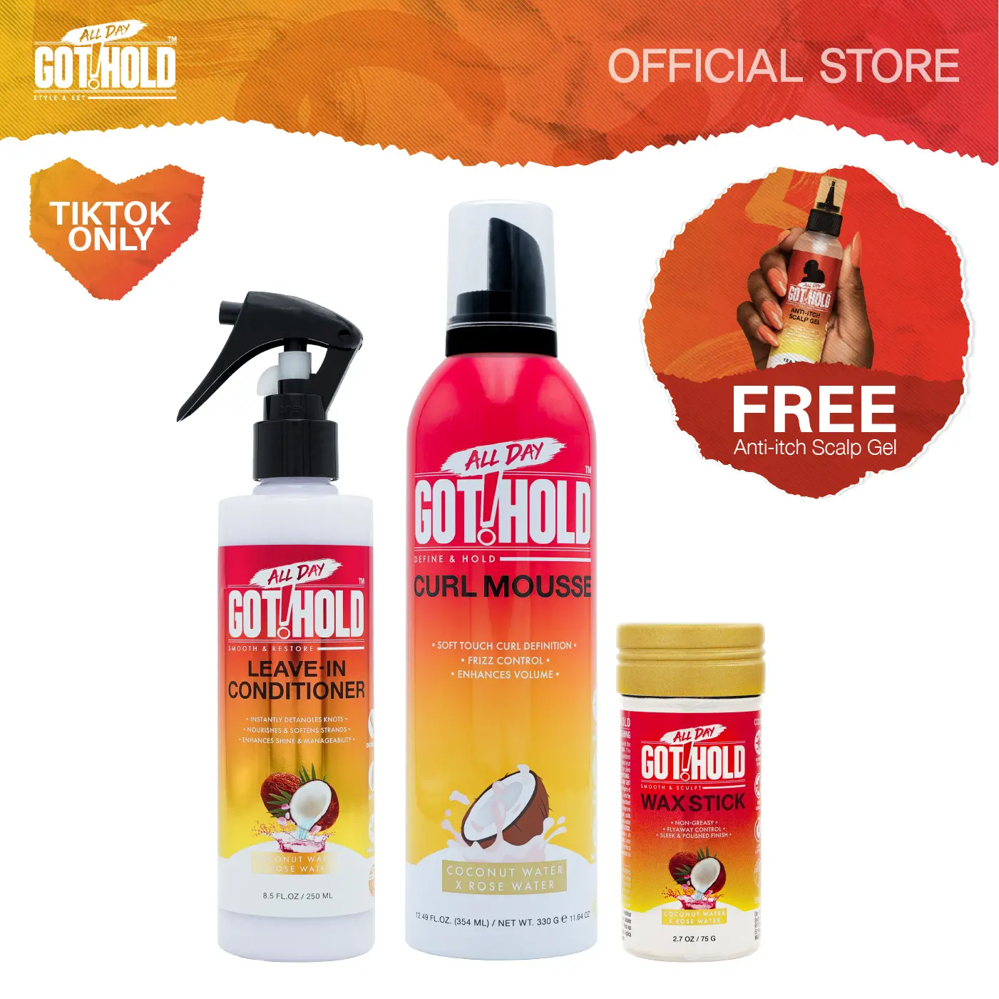 All Day Got Hold | Curl Mousse Bundle | Leave-In Conditioning, Wax Stick & curl Mousse + Anti Itch Free Gift l Hair Conditioner gel