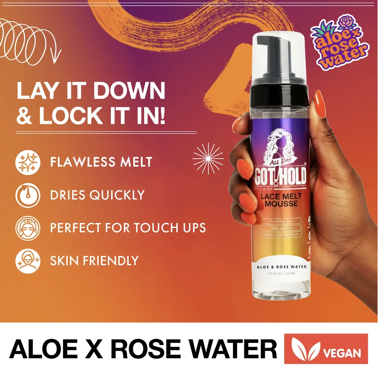 ·Wig Lace Melt Mousse – Lightweight formula to press, set & perfect the melt
