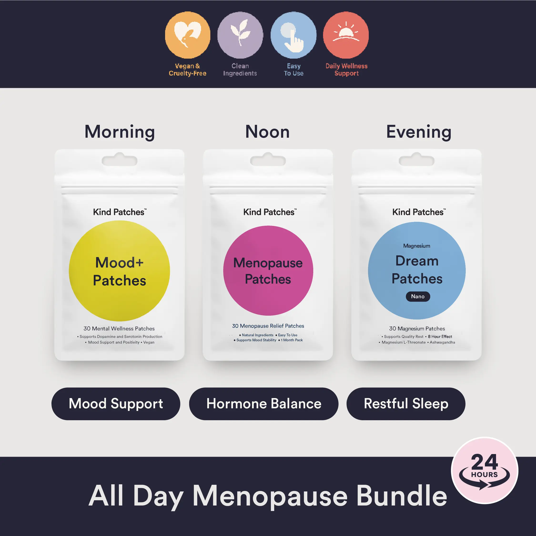 ·Afternoon — Menopause Patches: supports hormone balance and overall comfort.