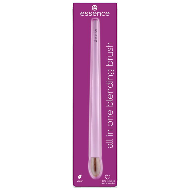 essence All in One Blending Brush is perfect for cream and powder products, offering a versatile shape for achieving a flawless makeup look. With soft bristles and a soft-touch handle, it excels in blending eyeshadow, highlighting cheeks, and setting skin with powder. Its unique design is complemented by an eco-friendly touch— the handle is crafted from 100% recycled material.