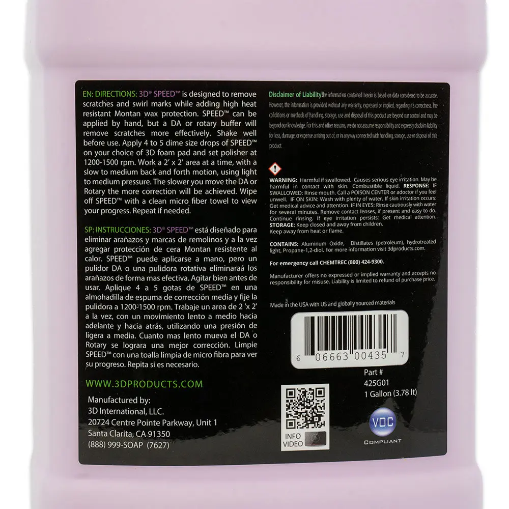 3D SPEED is an all-in-one car scratch remover, swirl correction and wax sealant. 3D SPEED can be used with any type of machine, any type of pad and is the most effective AIO on the market if you choose to work by hand.