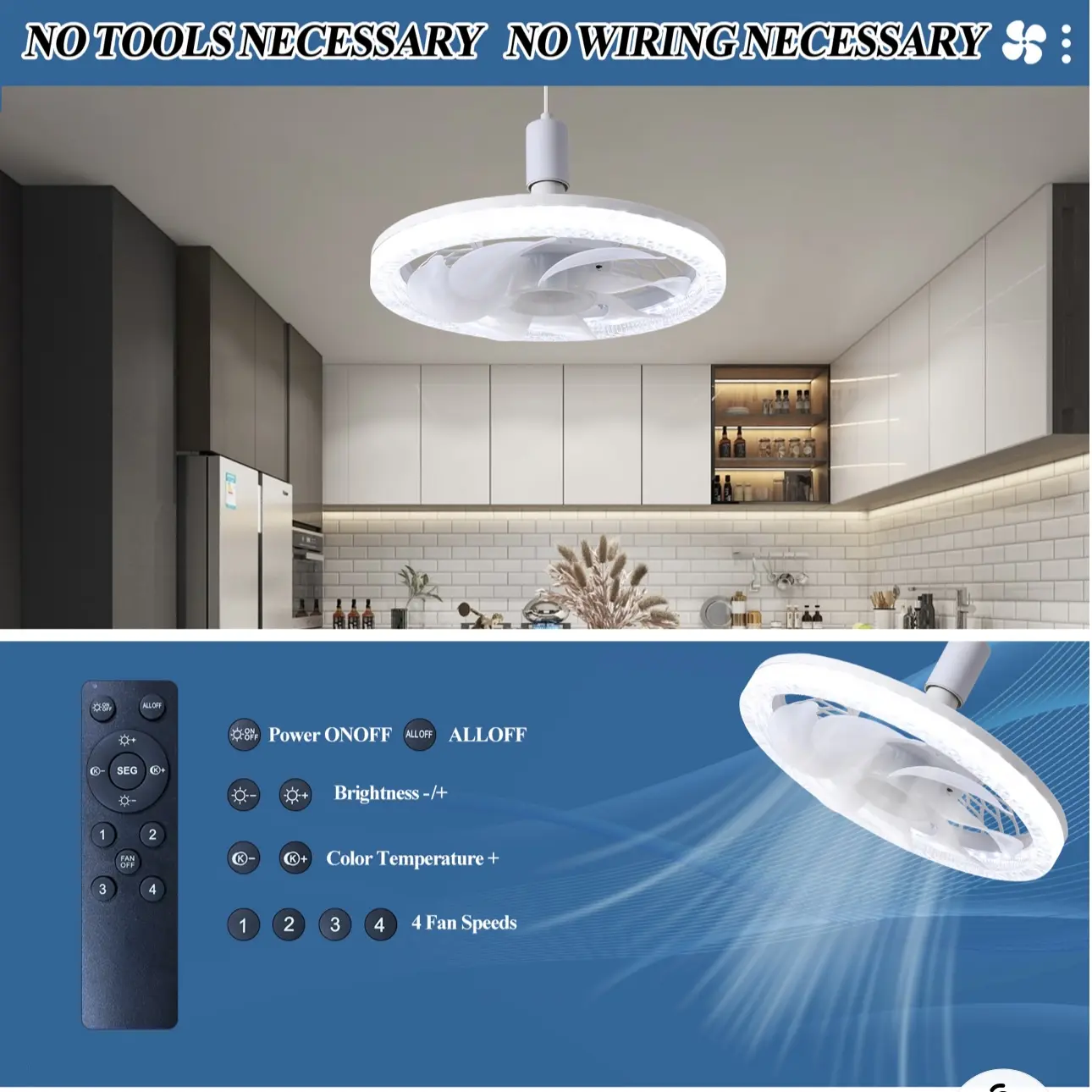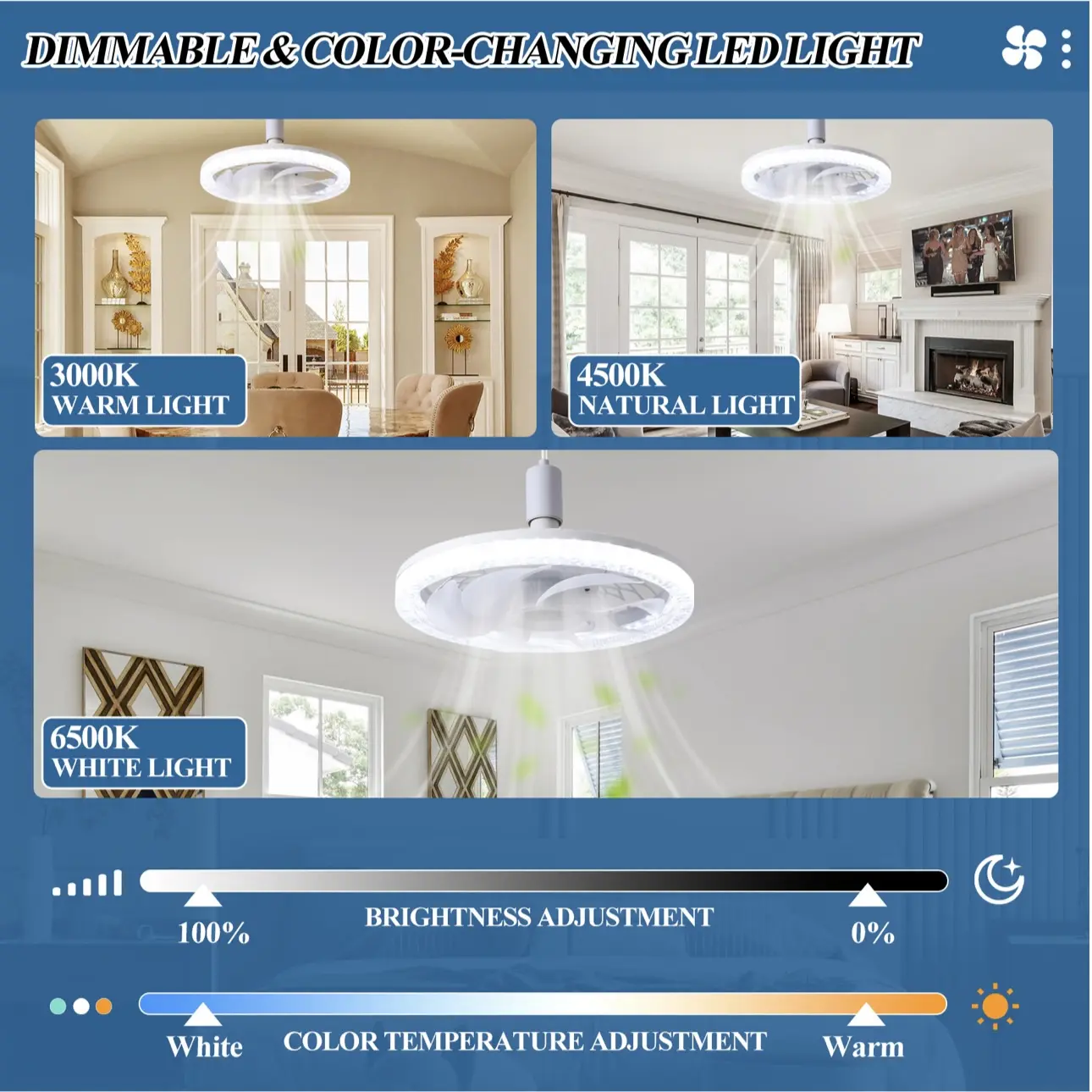 All-in-One E27 Ceiling Fan Dimmable Light Variable Speed Multi-Scene Compatibility Modern Design Energy Efficient