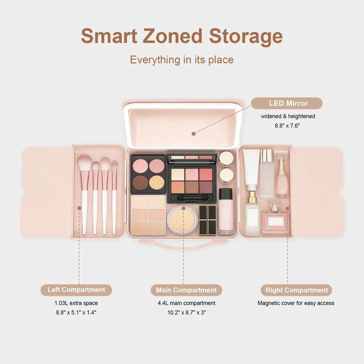 Pro-Level Organization: 3 smart partitions to keep your brushes, palettes, and lipsticks perfectly organized. No more digging through a "black hole" for your favorite liner.