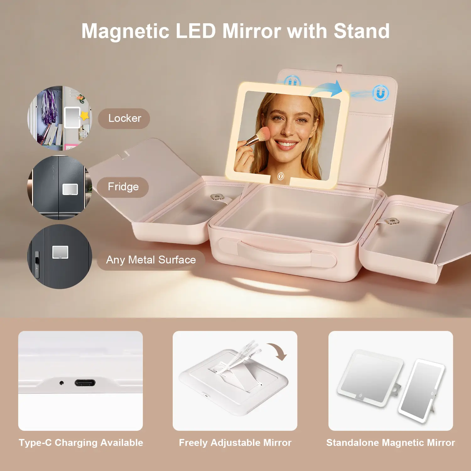 Snap-On Magnetic Mirror: The game-changer! Detach the LED mirror and snap it onto your fridge, locker, or any metal surface. Makeup in the kitchen? Check. Gym touch-up? Done.