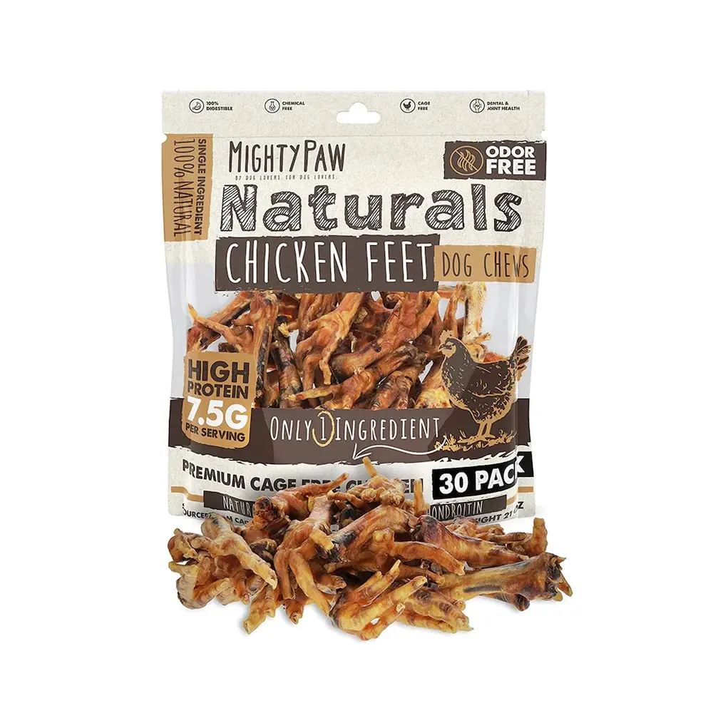 Treat your furry friend with Mighty Paw Naturals' Chicken Feet Dog Chews! These crunchy treats are crafted from 100% natural chicken feet, offering a delicious and nutritious snack. Each bite provides a satisfying chewing experience, perfect for your dog's enjoyment.