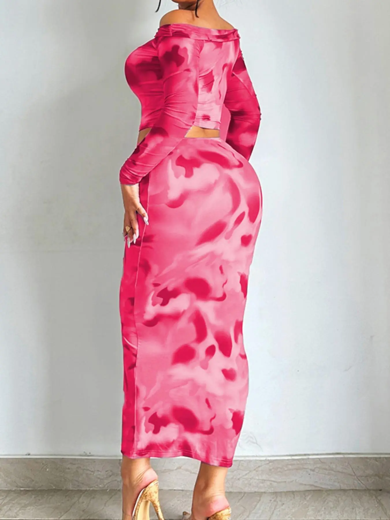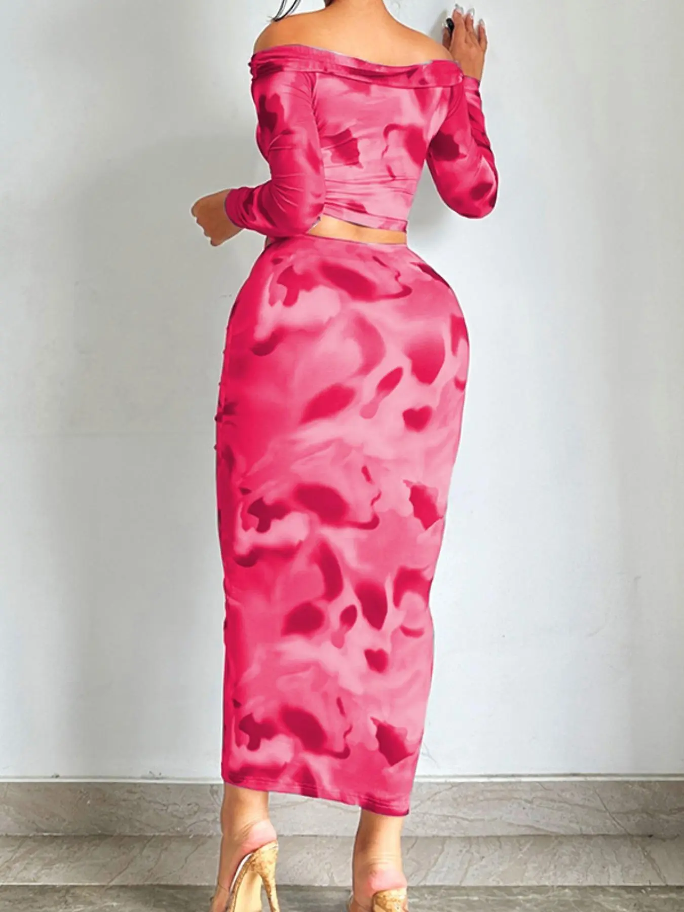 Elegant Women's All-Over Print Skirt Set, Off-Shoulder Crop Top & High-Waist Bodycon Skirt, Perfect for Parties & Daily Wear #skirtoutfits #cozyloungewearset #loungewearsets #skortoutfit #sweatpantsset #womensclothingtiktokshop #comfy2piecesets #twopiecesetoutfit #bodysuitset #pinkoutfits