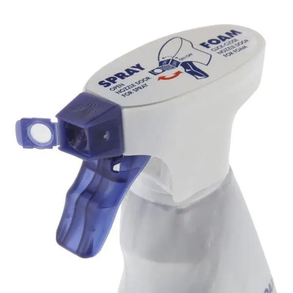 Also our futuristic trigger allows you to change from a spray to a foaming action to clean vertical and horizontal surfaces better and it can be used upside down