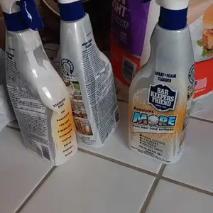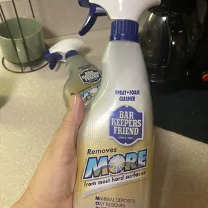 This Barkeepers Friend More Spray and Foam 25.4 oz. cleaner is perfect for removing mineral deposits, oil and grease, rust stains and everyday grime. The futuristic trigger allows you to change from a spray to a foaming action to clean vertical and horizontal surfaces better. It can be used upside down. This cleaner works incredibly on stainless steel, tile, porcelain, ceramic, fiberglass, aluminum, copper, brass, chrome and more.