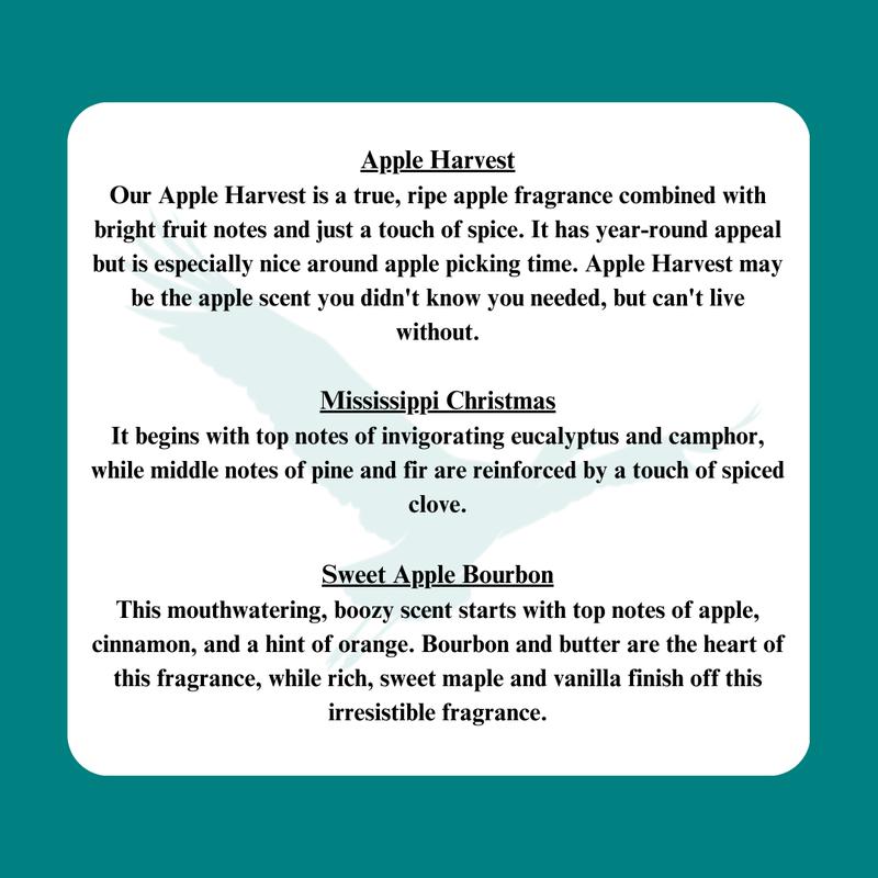 Fragrance Oil: High quality fragrance oil that are pet safe and free of reproductive and cancer causing toxins. Each fragrance has a different ingredients to produce the different fragrance notes. Oils are derived from essential oils. Oils can contain nut oil.