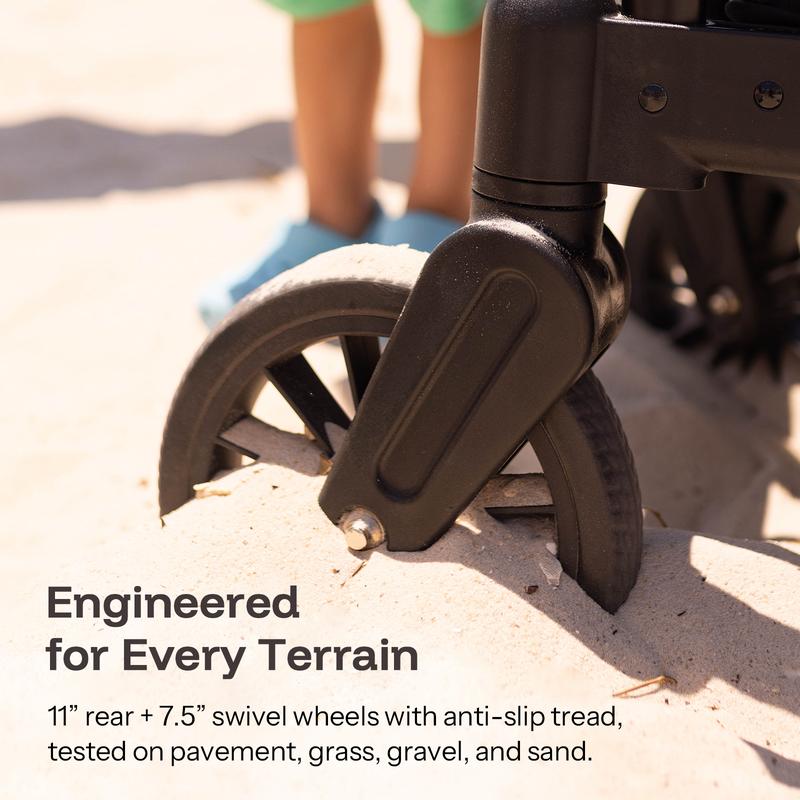 All-Terrain Wheels: 7.5″ front swivel wheels and 11″ rear wheels with EVA foam and shock absorption offer a smooth ride across uneven paths.