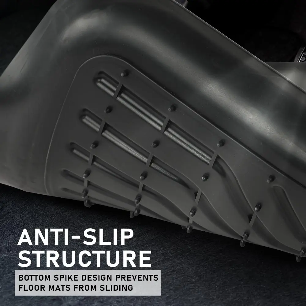 Anti-Slip Design: Floor liners have raised edges and deep grooves for higher coverage, even in wet conditions, floor mats have a strong grip and will not move easily, effectively preventing the mat from slipping.