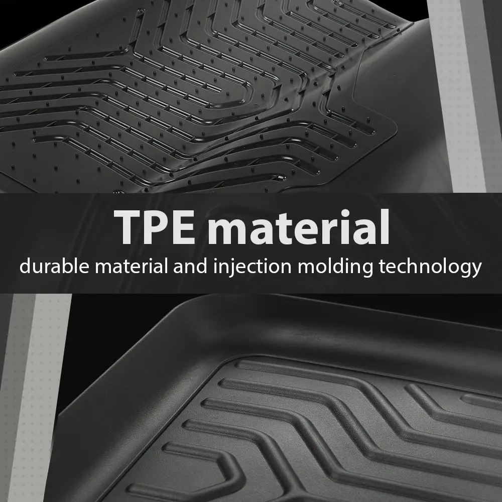 Premium Material:Our floor liners are made from upgraded TPE material that ensures no unpleasant odors, even in extremely hot weather. The high-strength TPE material not only has an excellent feel and is extremely abrasion-resistant, but also remains resilient even in the coldest weather.