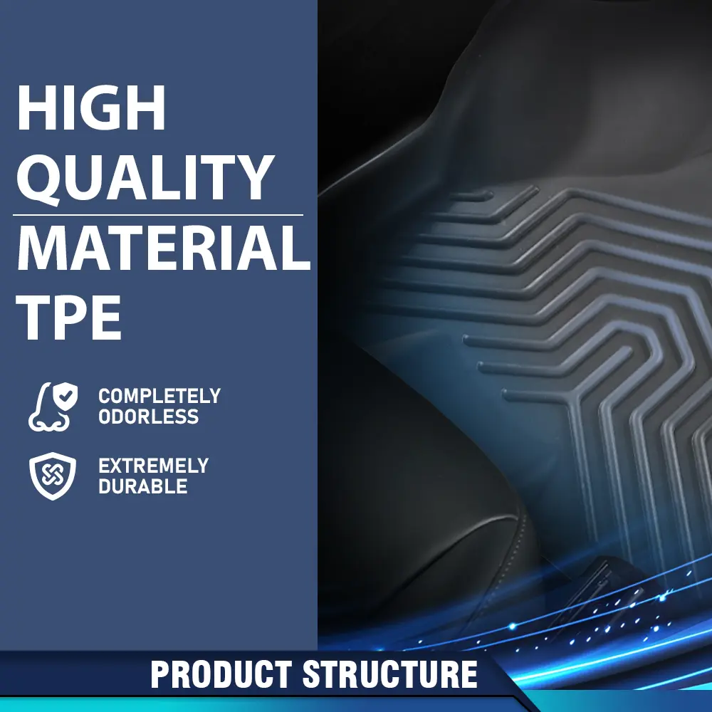 Our floor liners are made of upgraded TPE materials that do not produce unpleasant odors even in extremely hot weather. High-strength TPE materials not only have excellent feel and wear resistance, but also remain elastic even in cold weather.