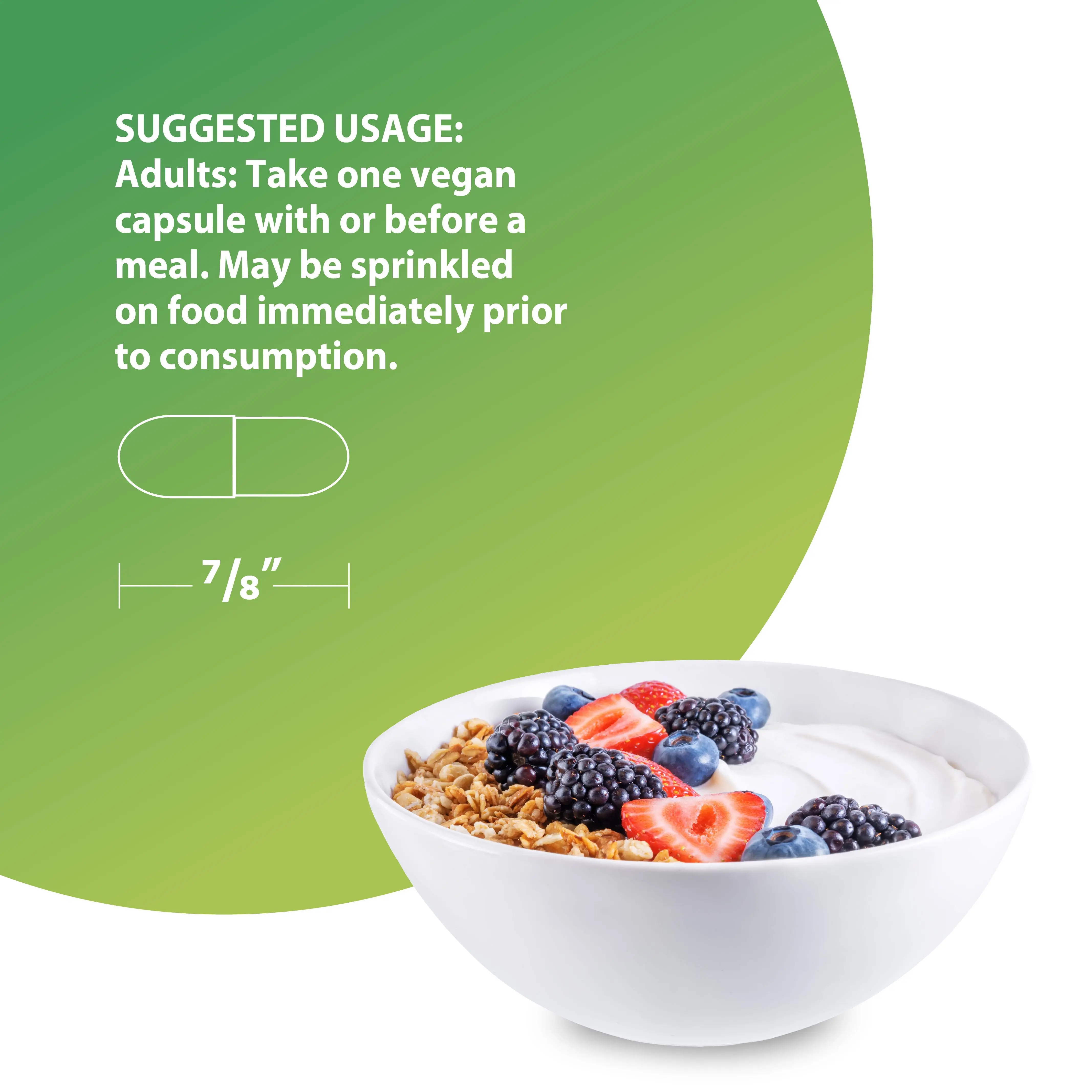 Advanced Enzyme System’s 10 plant-sourced enzymes support the digestion of fats, proteins and complex carbohydrates often found in today's processed foods. This potent enzyme blend includes amylase to break down complex carbohydrates, starches and sugars; Lipase to break down fats found in many dairy products, nuts, oils, and meats; Protease to break down the protein in foods like meat, nuts, eggs, and cheese; Invertase to break down sucrose, or table sugar; Cellulose to break down the fiber in grains and vegetables; and Lactase to break down lactose.