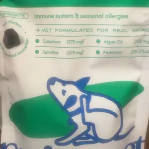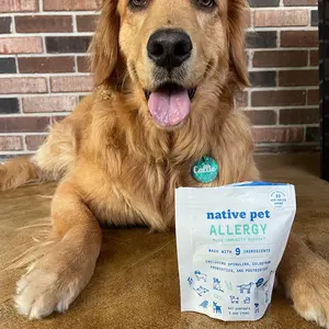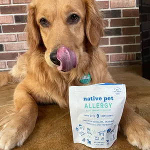 Native Pet Dog Allergy Chews support seasonal allergies and healthy immune system function. Formulated with colostrum, spirulina, and probiotics, these chews reduce allergy symptoms. The immune-boosting blend promotes long-term immune balance, reducing itchy skin, paw licking, and sneezing.
