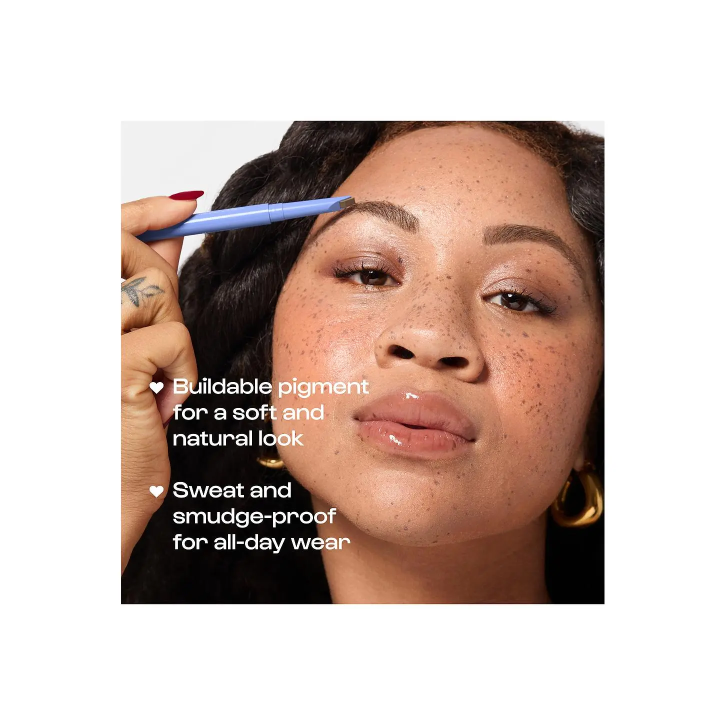 ·Alternate easily between creating precise, hair-like strokes and filling in arch-defining shape with the uniquely angled precision tip Condition your brows for a healthy, natural sheen with a blend of coconut and vegetable oil