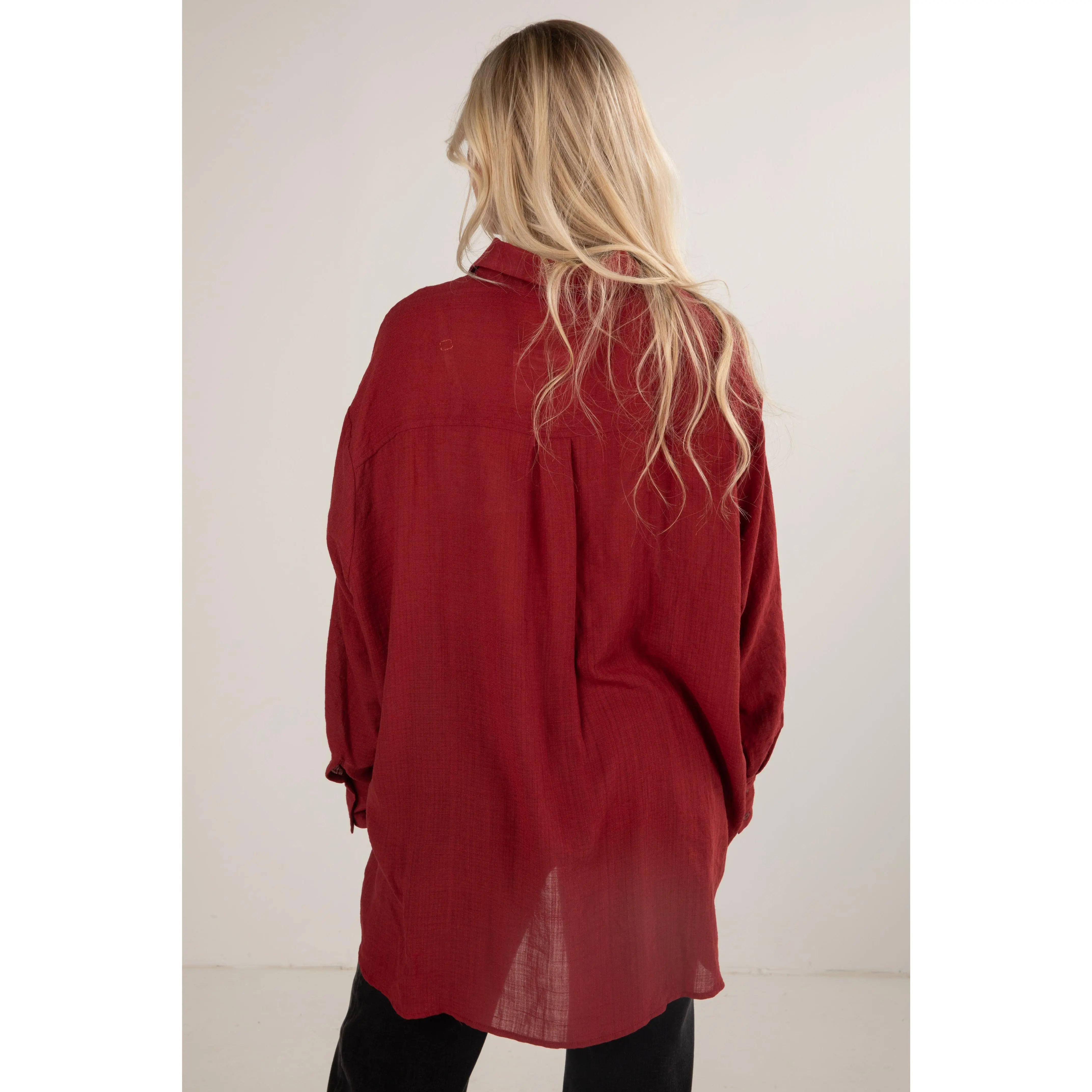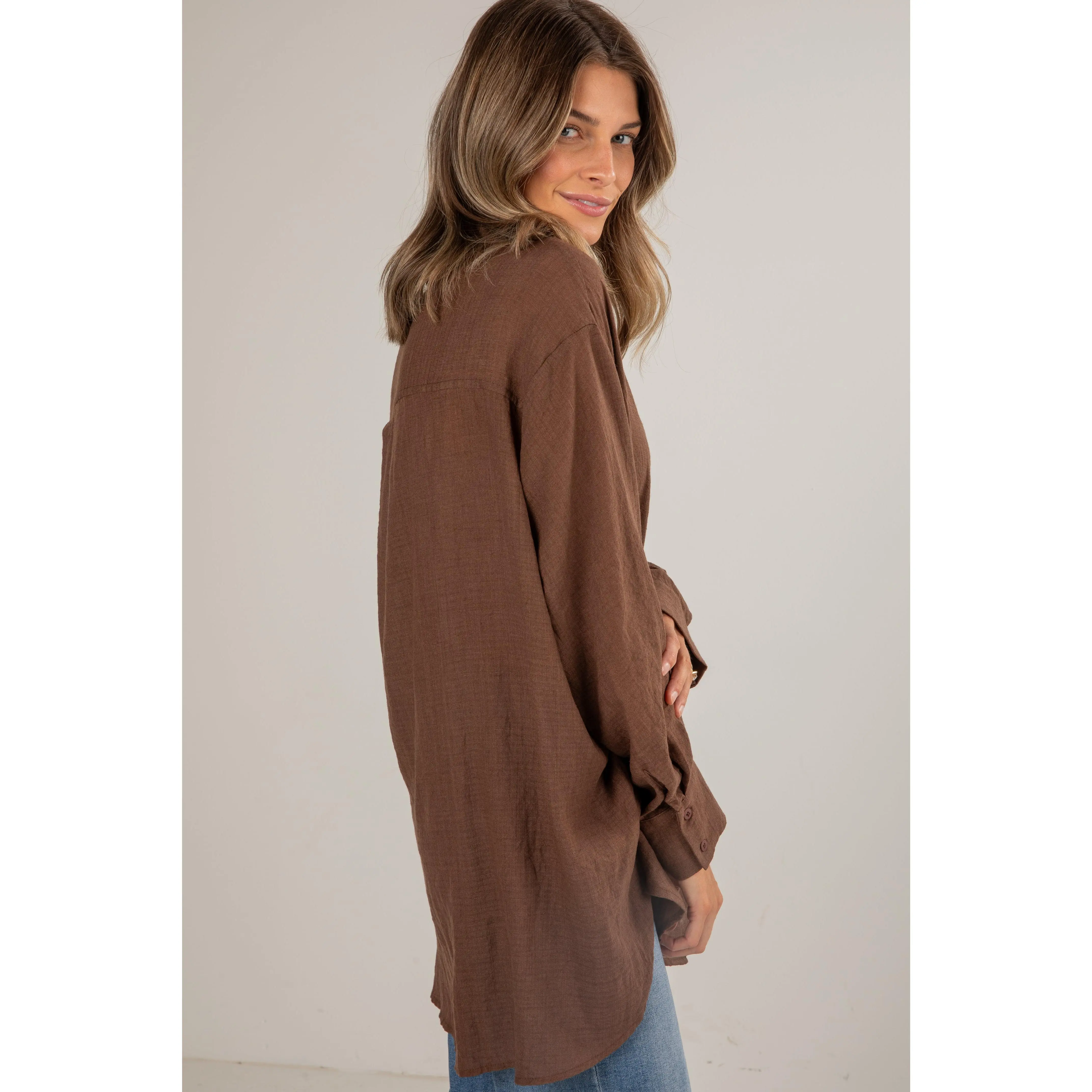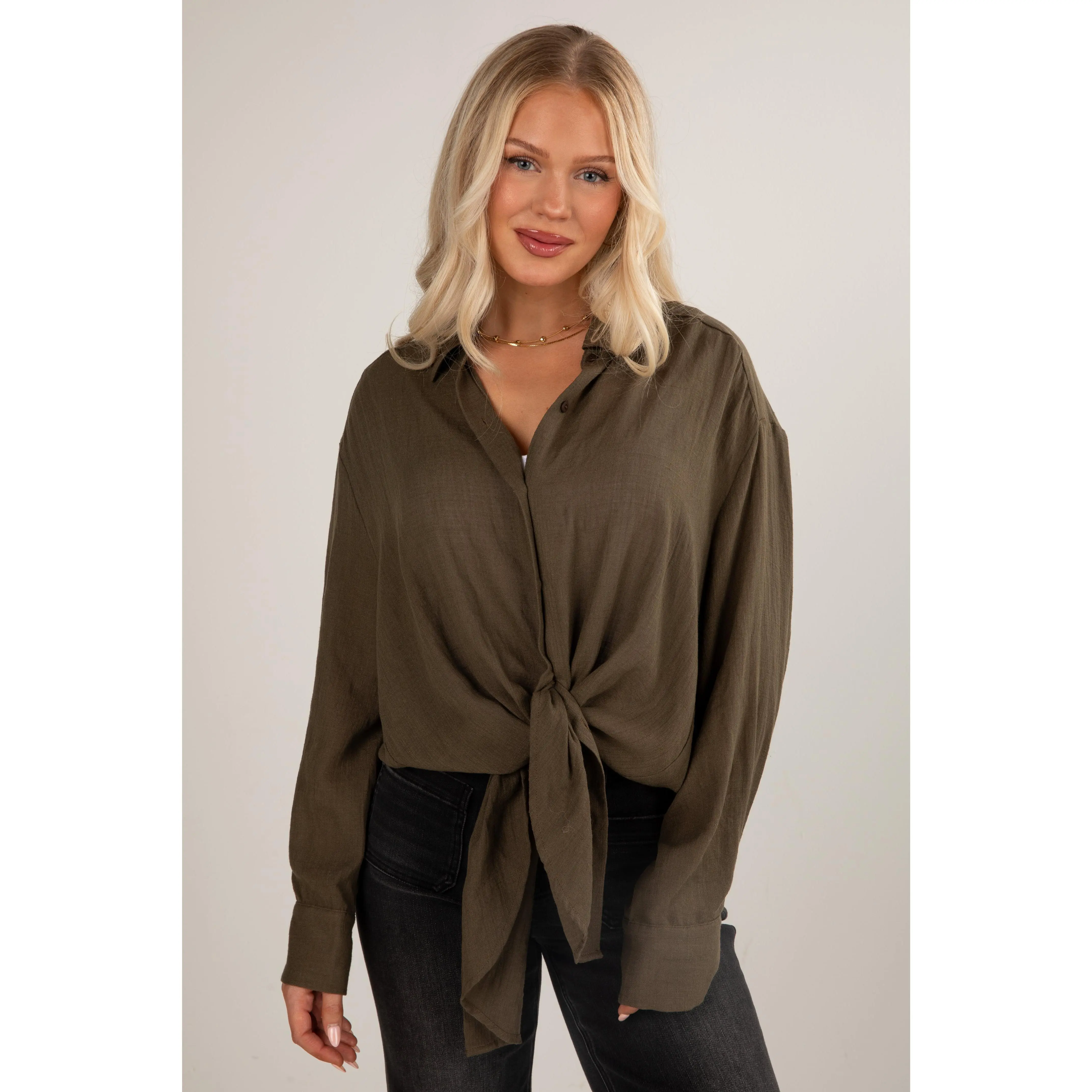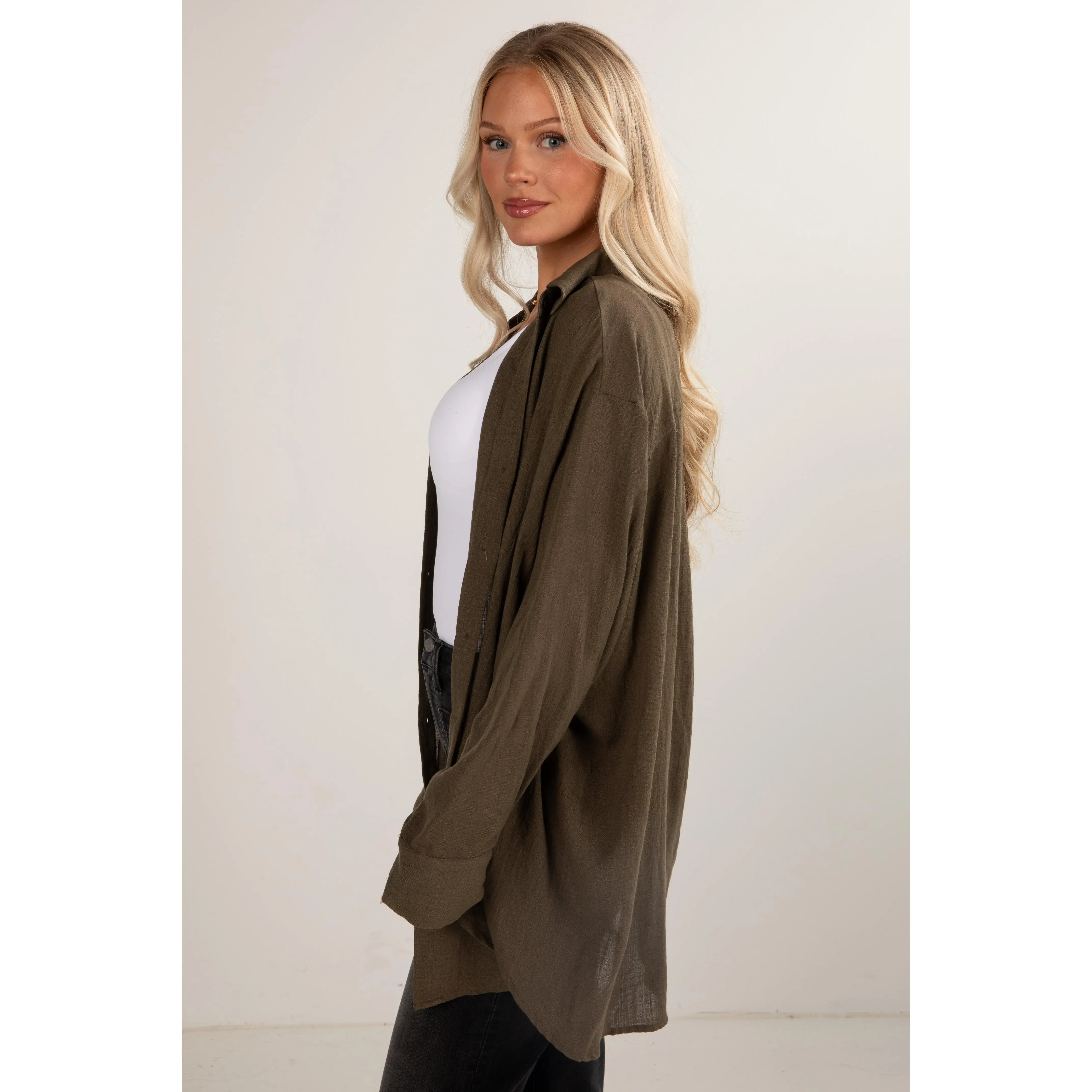 Introducing the Allison Oversized Button-Up Blouse—a versatile and effortlessly chic addition to your wardrobe! This blouse redefines classic comfort with its relaxed fit and contemporary style, offering a modern twist to a timeless silhouette. Crafted from a lightweight and breathable fabric, this oversized blouse ensures all-day comfort while exuding an air of laid-back sophistication. The loose fit drapes gracefully, providing a flattering and flowy silhouette that complements various body types. The button-up front adds a touch of classic tailoring, allowing you to adjust the neckline and style the blouse to suit your mood. Whether paired with fitted trousers for a polished look or worn loosely over denim for a casual ensemble, the blouse effortlessly transitions from day to night! Available in 17 colors.