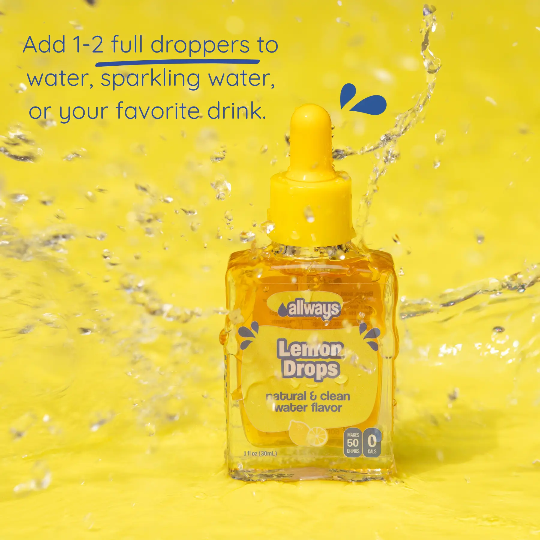 Allways Drops Lemon Water Flavor Enhancer | Zero Sugar Lemon Drink Drops | Naturally Sweetened Lemon Flavoring for Water Coffee and Mocktails