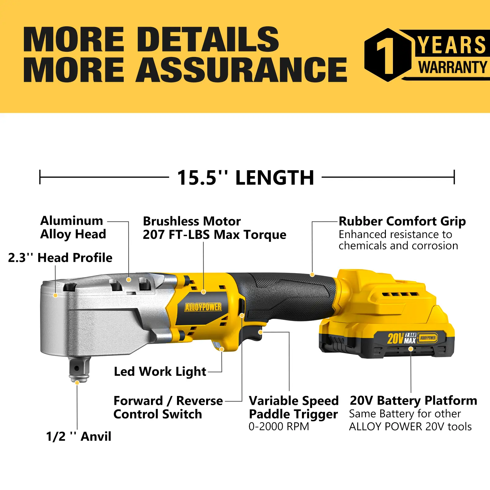 ALLOYPOWER 20V Brushless Right Angle Wrench